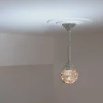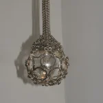 The Single-Pendant Chainmail Droplet Chandelier, a masterpiece by Panorammma, stands as a testament to handcrafted brilliance. A chainmail web delicately embraces the chandelier’s canopy, gradually forming a tightly knit rope that gracefully suspends a glass globe. Behind this intricate chainmail veil, a warm light source remains concealed, casting a mesmerizing glow. The Chainmail Droplet Chandelier embodies a captivating paradox between material and form, assuming an organic cocoon-like appearance.