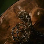 Chainmail, a material laden with historical significance, signifies both grandeur and victory, as well as violence. Initially devised for protective armor, it has transcended into the realms of jewelry, punctuations, restraint, bondage, and discipline. It exemplifies an ancient craft that paradoxically exudes an industrial and modern aesthetic. With this pendant, Panorammma aspired to fashion an object that melds industrial materials into a gentle luminescent sanctuary.