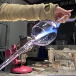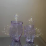 Made with Borosilicate glass using the glass blowing technique. Transparent lilac and clear glass.