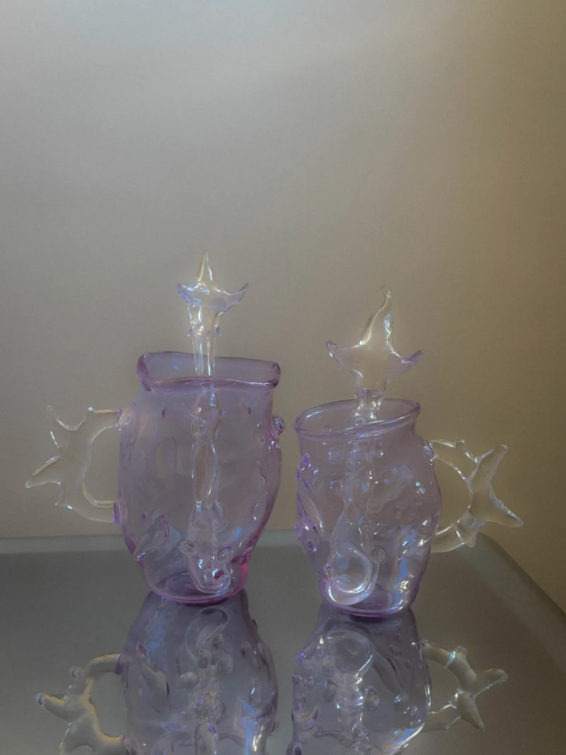 Indulge in a moment of wonder with this handmade glass cup by Pia Glassworks, a vessel where artistry and imagination converge. Each piece captures the intangible, inviting you into a world where time dissolves and the boundaries between reality and fantasy blur. Designed for those who chase the unseen, it transforms the simple act of sipping into an extraordinary experience.