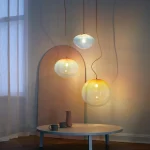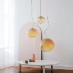 Sirius by ELOA is the most visible star in the sky. SIRIUS combines the liveliness of light with the beauty of organically rounded horizontal shapes – bringing a majestic feeling of levitation into your space. It sparkles, suspended from the ceiling, with its pleasingly irregular form creating an impression of quiet movement throughout the room. Its iridescent amber hues contain all the colors of the light spectrum – giving out a warm glow and surrounding you with a cozy cocoon of calm.