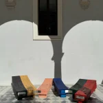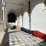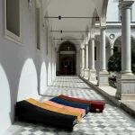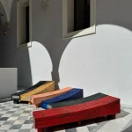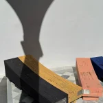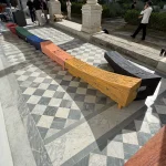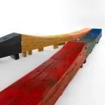 Six Benches consists of six segments of different lengths and colors. Each segment is crafted from 100-year-old reclaimed wood sourced from house demolitions in Tbilisi, Georgia. Minimally processed wooden pieces showcase the beauty of wood as a material, while colored linseed oil highlights the diverse textures of the selected blocks, including fir, oak, beech, and pine. Custom aluminum hardware, including hinges and handles for easy transformation, has been developed to connect the segments. This is the only machine-made factory element, strikingly contrasting the natural wooden material. Six Benches was presented at the 6th edition EDIT Napoli design fair in 2024.