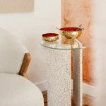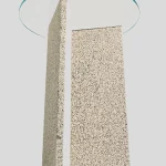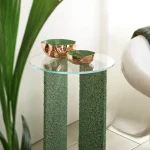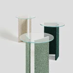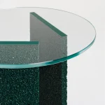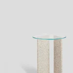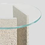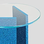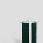 SLAB, a series of contemporary tables by Jordan Keaney Design that explore the balance of texture, colour and transparency in a precise and seamless design. SLAB is a side table that explores materiality, balance, and seamless construction. A glass top is securely bonded to two textured legs using an invisible join, creating a striking fusion of form and function. By reducing the structure to just two legs, SLAB challenges traditional furniture design while maintaining stability and strength. SLAB is available as a side table, coffee table and console table, in any colour and dimension you wish, with the option to have a glass top, or metal top.