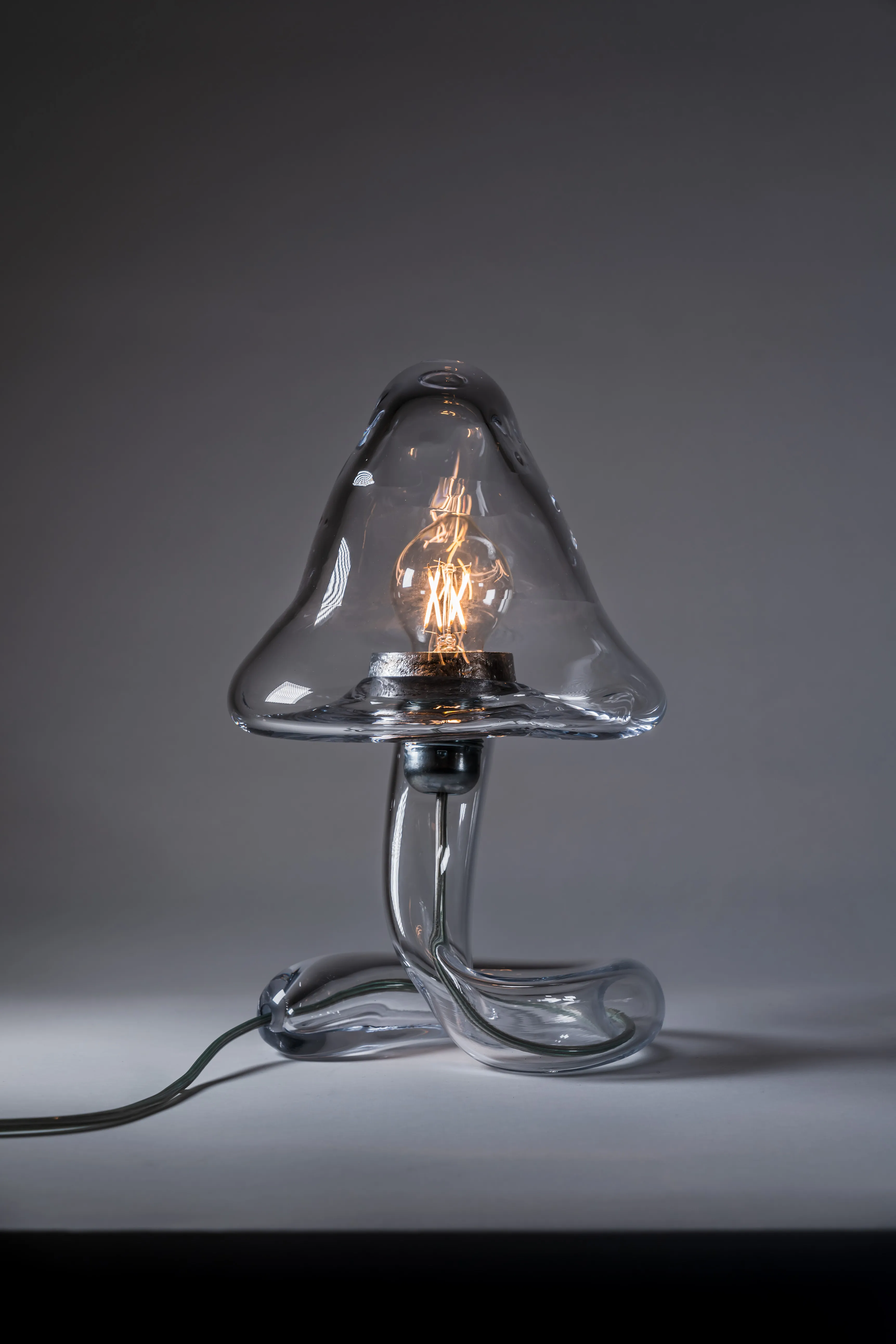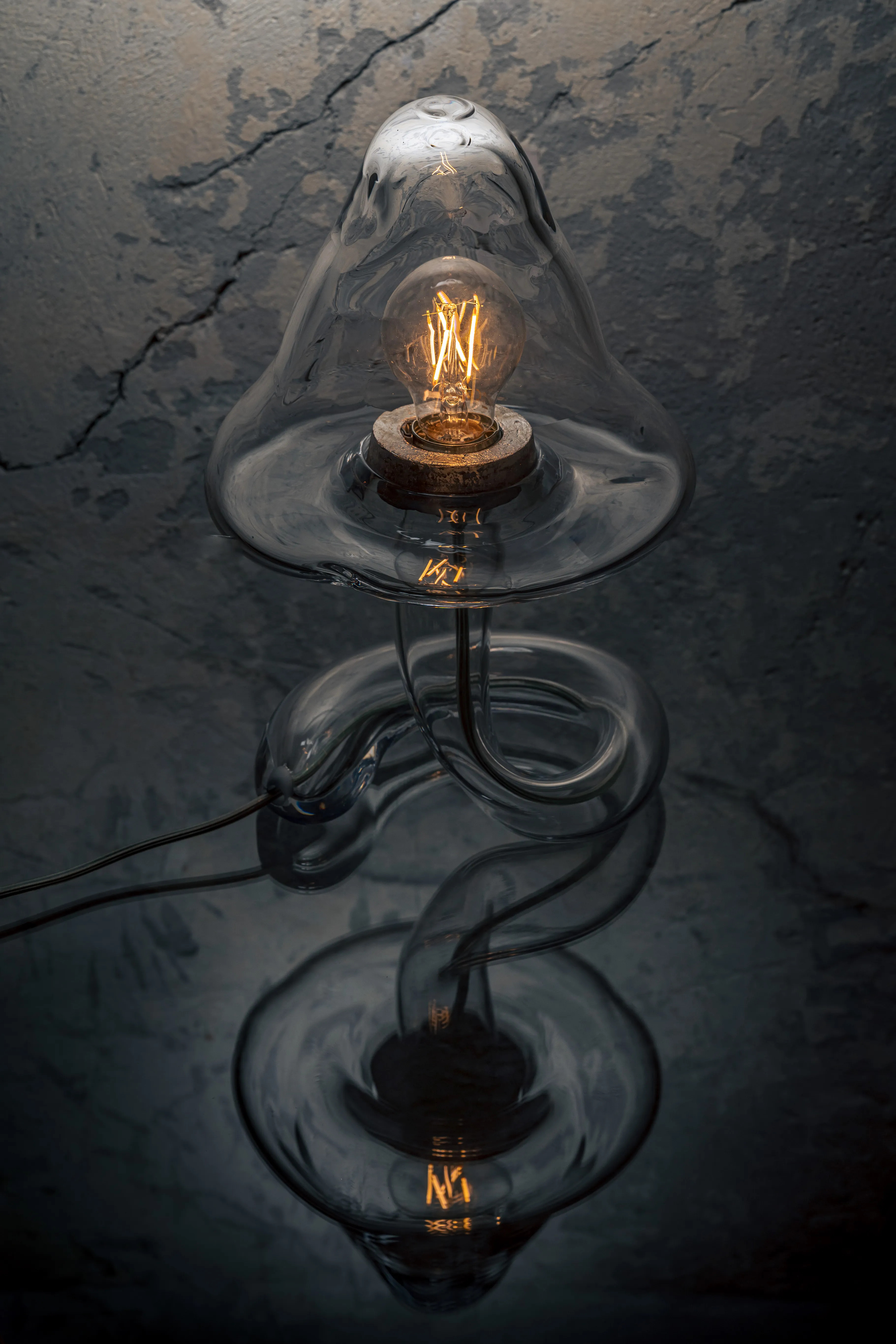 The “Sluren” glass lamp was originally commissioned by the Swedish Institute in Paris. It is mouth blown and produced in a limited edition. Each year has a new color. The color for 2021 is clear, transparent glass. There are still a couple of pink ones to be ordered as the original color. “Sluren” has been exhibited during Milan Design week.