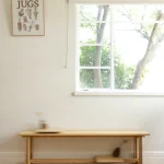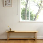 The bench is split along its length, allowing a view through to its handcrafted construction. A sliding tray can then be placed within this gap. Carefully considered and rotated 90 degrees, the tray can be used on the top of the bench and also on the bottom rails.