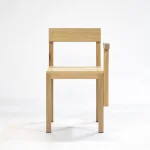 Introducing the SM1 Chair, a distinctive creation from the SM1 series, launched in 2023. Crafted from solid Tauari wood, the series offers surfaces suitable for seating or support, complemented by auxiliary components. The SM1 Chair elegantly combines a surface, backrest, and an armrest. The inclusion of these parts is optional and seamlessly integrated using black Allen screws. For added stability and protection to your floors, the chair legs are equipped with small rubber plates.