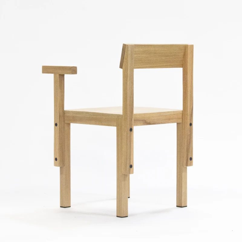Introducing the SM1 Chair, a distinctive creation from the SM1 series, launched in 2023. Crafted from solid Tauari wood, the series offers surfaces suitable for seating or support, complemented by auxiliary components. The SM1 Chair elegantly combines a surface, backrest, and an armrest. The inclusion of these parts is optional and seamlessly integrated using black Allen screws. For added stability and protection to your floors, the chair legs are equipped with small rubber plates.