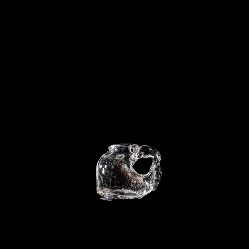 This charming Small Creamer is a creation of the talented Aleksandra Zawistowska and her team, expertly hand-blown to bring an artistic touch to your table. Each piece is the result of a bold, experimental process that shapes glass into distinctive forms. The rugged, organic contours are achieved through the innovative use of natural elements like stones and ceramics, lending a unique character to every creamer.