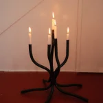 Artisan Craftsmanship atmospheric lighting authentic handmade design black patina steel Collectible design piece contemporary lighting accessory designer candleholder Dining Room East London workshop elegant table decor Functional art object handcrafted metalwork Handmade Candle Holder industrial chic decor Metal Minimalist minimalist design modern home decor modern steel candelabra Mono-Material Furniture Neo Industrial Radical Design sculptural candelabra signature home accessory small candelabra The New Medieval timeless interior accent Year of the Snake