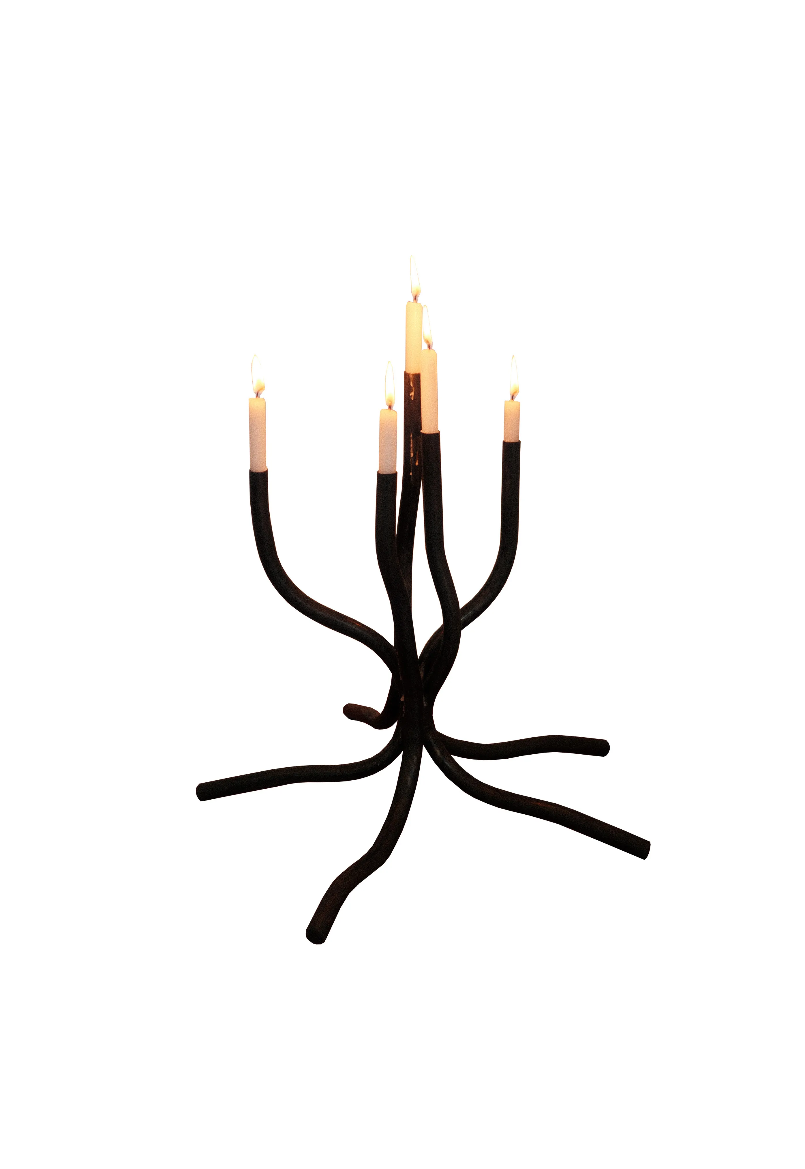Artisan Craftsmanship atmospheric lighting authentic handmade design black patina steel Collectible design piece contemporary lighting accessory designer candleholder Dining Room East London workshop elegant table decor Functional art object handcrafted metalwork Handmade Candle Holder industrial chic decor Metal Minimalist minimalist design modern home decor modern steel candelabra Mono-Material Furniture Neo Industrial Radical Design sculptural candelabra signature home accessory small candelabra The New Medieval timeless interior accent Year of the Snake