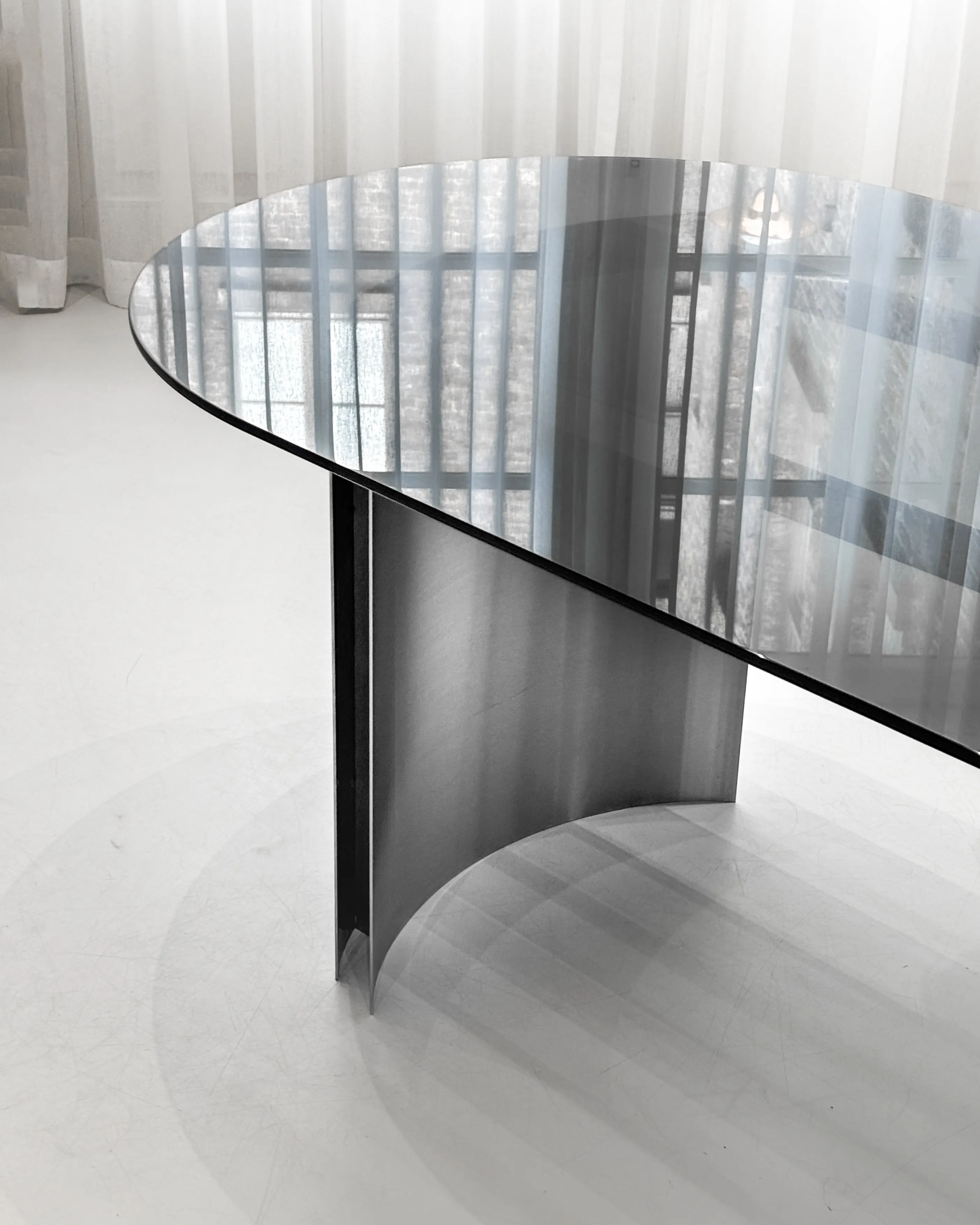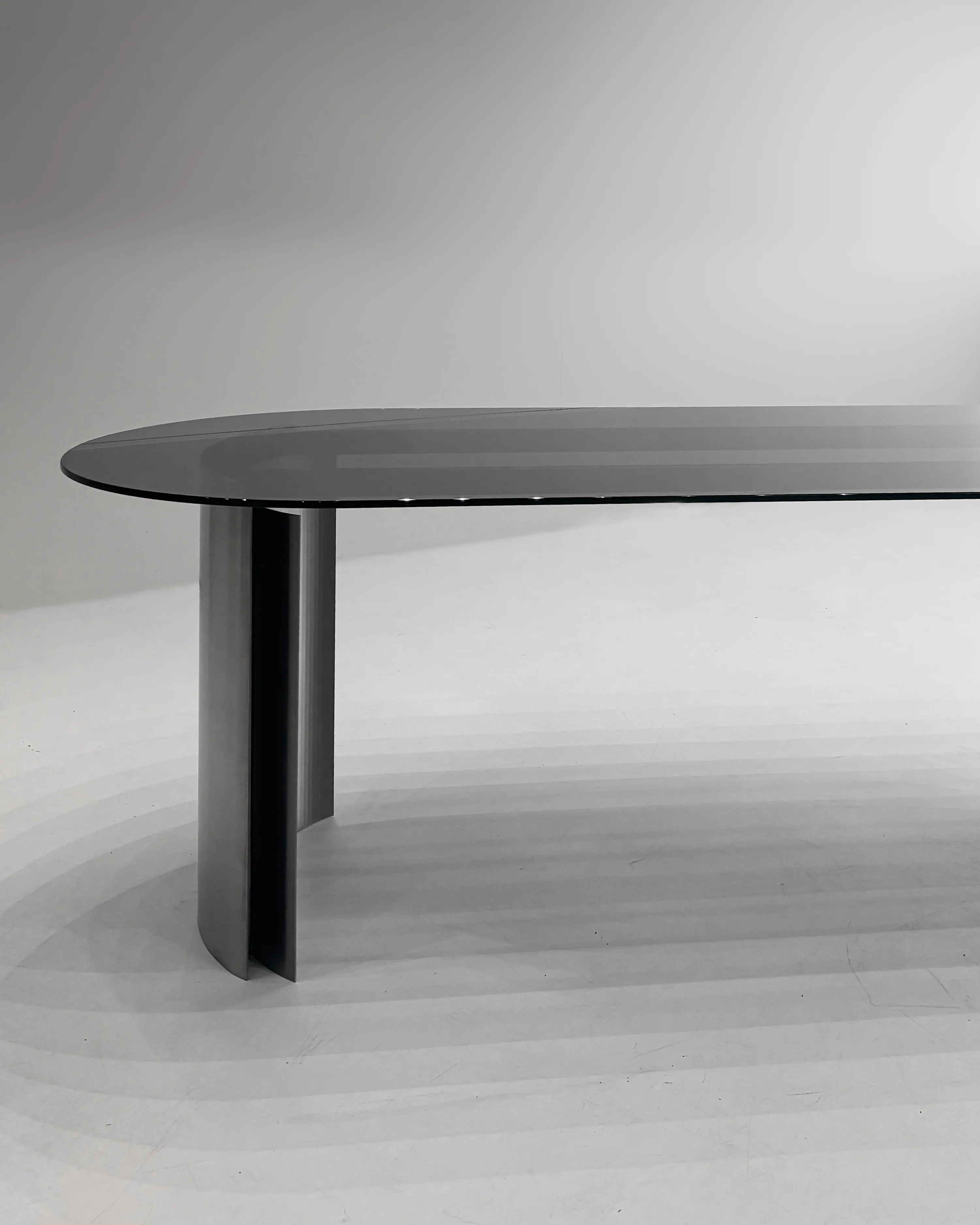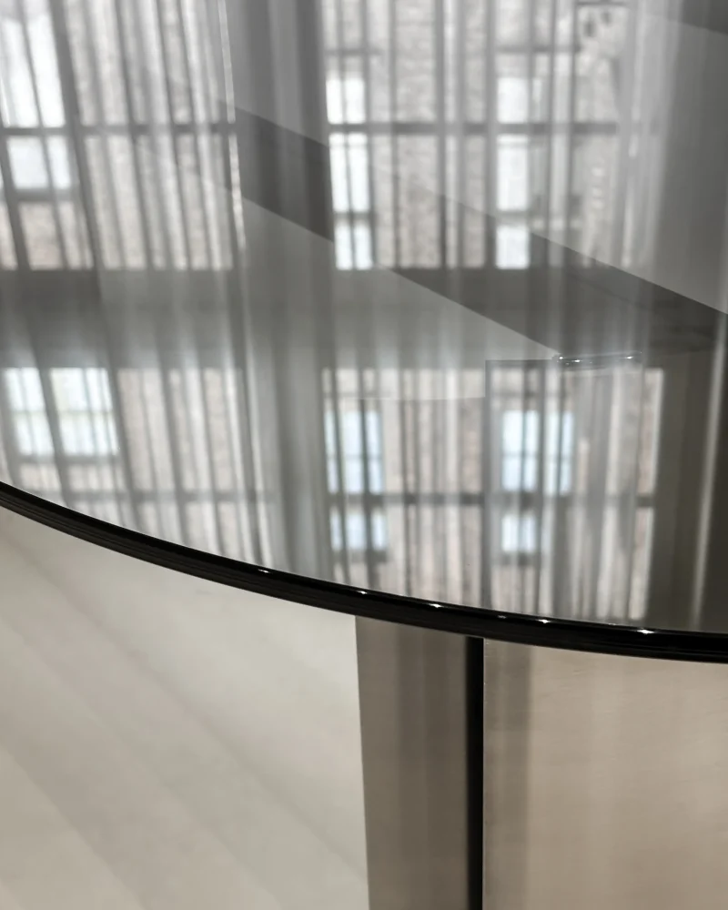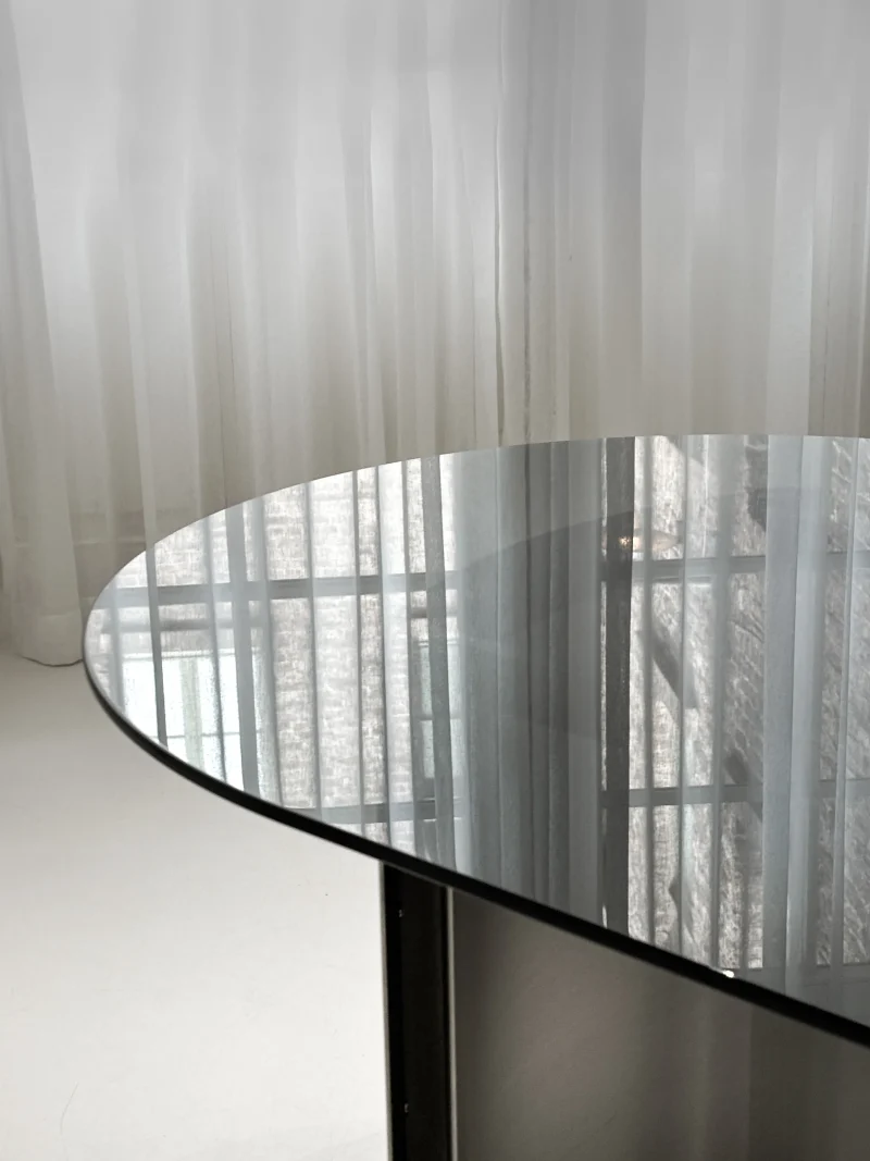 230 x 100cm Tabletop – Rounded Grey Tinted Glas (“Smoked”)