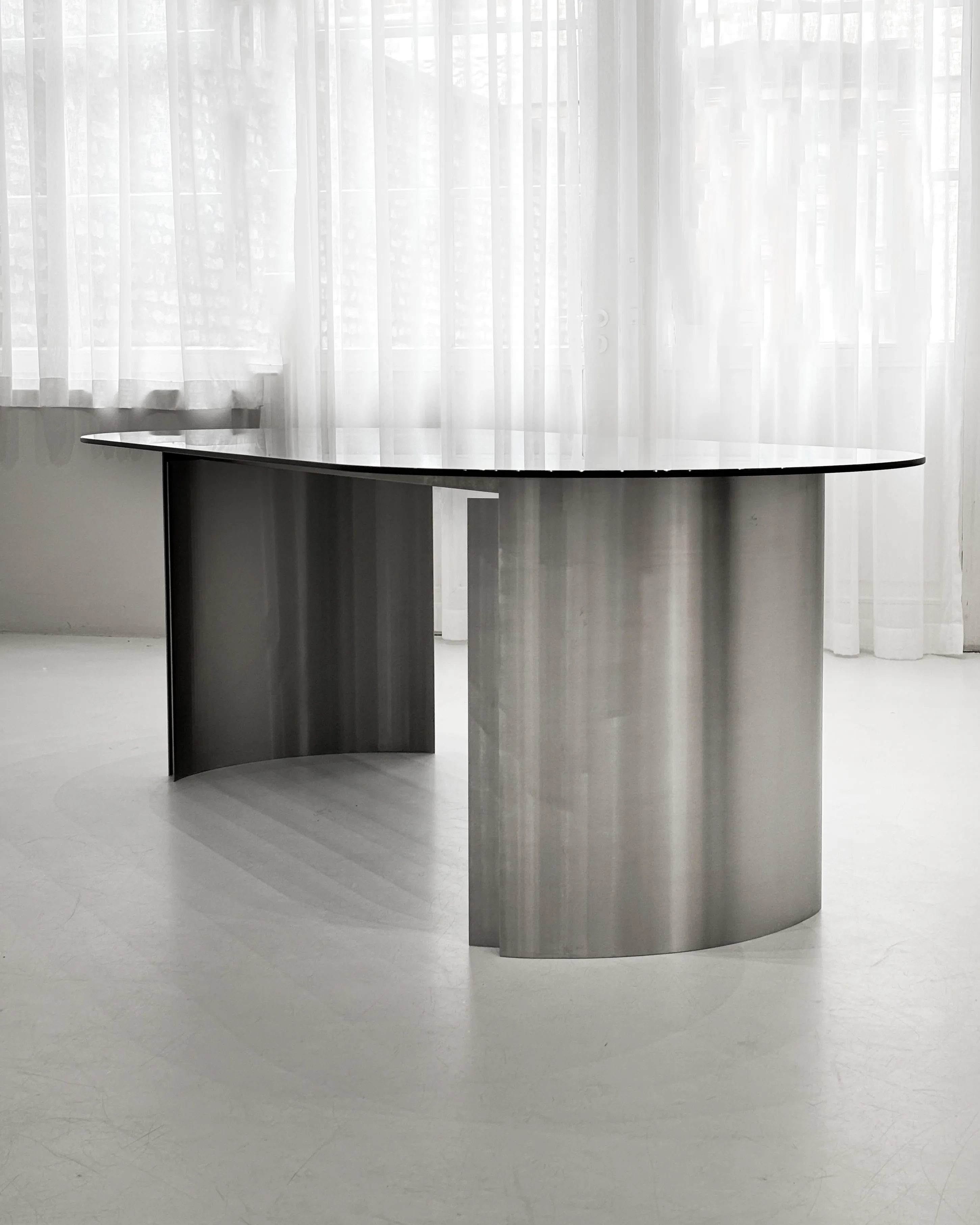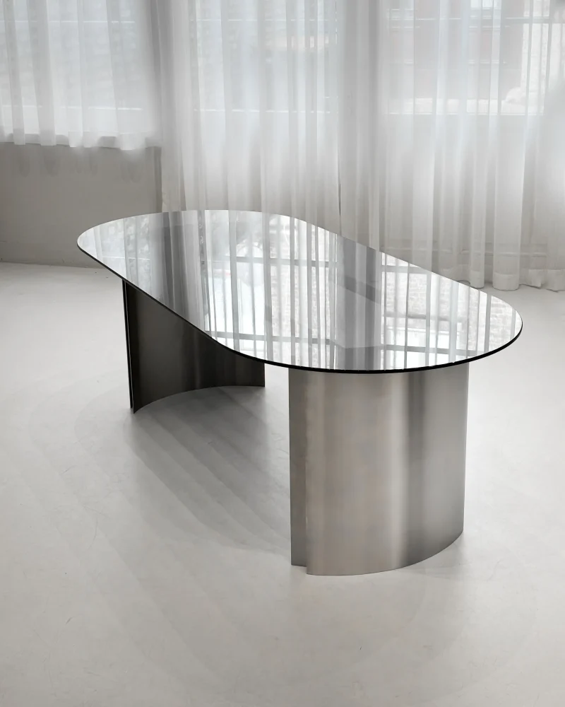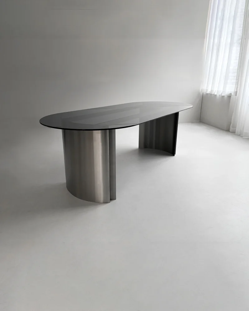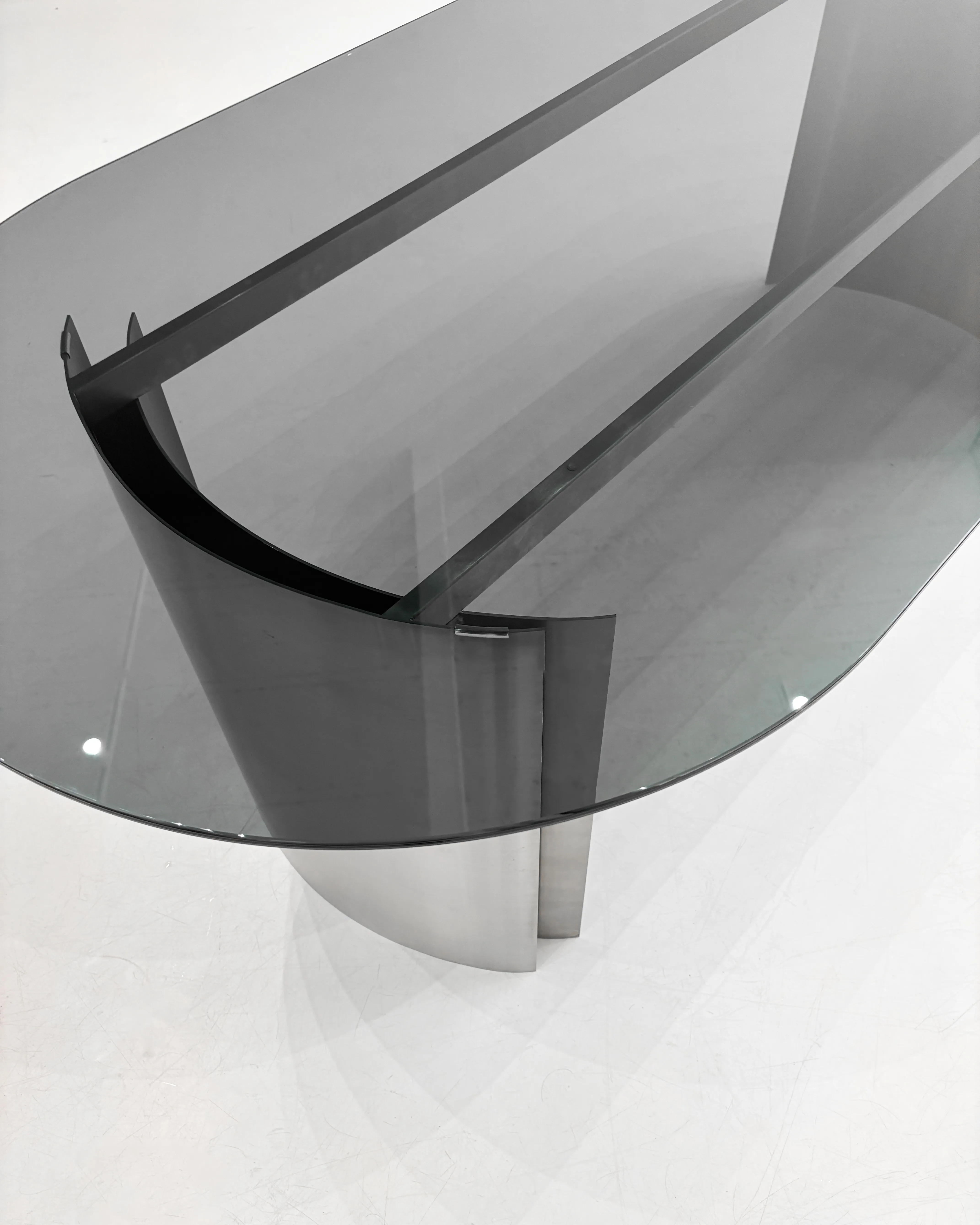 230 x 100cm Tabletop – Rounded Grey Tinted Glas (“Smoked”)