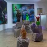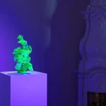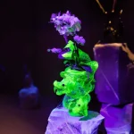 uranium glass, crystal, hand shaped, live plant