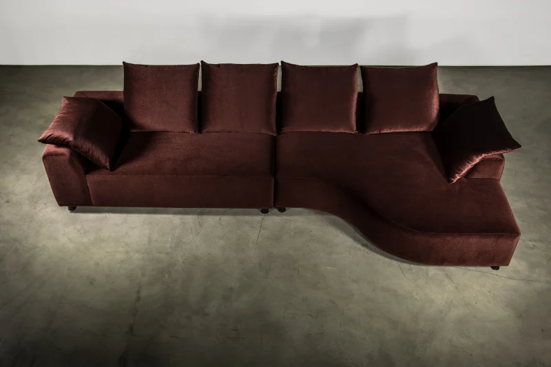 The Sofia sectional sofa combines contemporary elegance with luxurious comfort, offering a perfect centerpiece for refined living spaces. Crafted with meticulous attention to detail, this made-to-order design allows for complete customization in upholstery, rich leather, or premium fabrics.