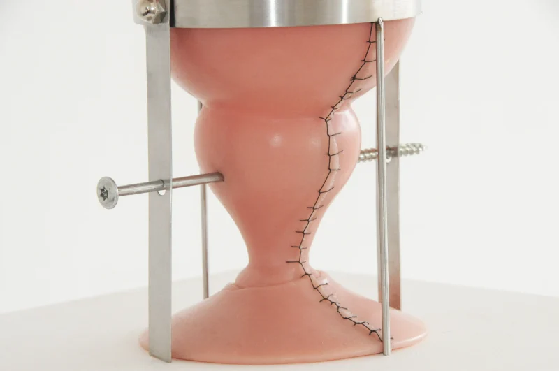 Making direct reference to the ability of bodily organs to function as vessels, while also alluding to plastic surgery and sex toys? Our soft vessels personify aided characters. Patients subdued by recomery. Impotent beings that struggle to perform the very tasks that define them as objects.