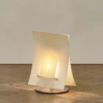The Soft Ply lamps transform delicate veneer into a resilient, sculptural form. Each shade is crafted from birch veneer, precisely cut like textile or paper craft. What begins as a fragile material gains surprising strength through pattern and structure, creating a surface that feels both intricate and enduring. Resting on a minimal aluminium base, the lamp offers a warm, tactile presence that brings craft, material innovation, and quiet elegance into the home.