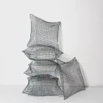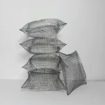 The metal mesh pillows reinterpret a familiar object through an unexpected material. Made from galvanized metal mesh and carefully shaped by hand, each piece captures the soft volume of a pillow while remaining rigid and structural.