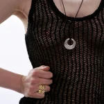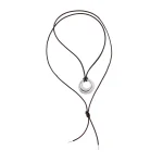 Pendant and strung on a dark brown leather cord finished with sterling silver end caps.