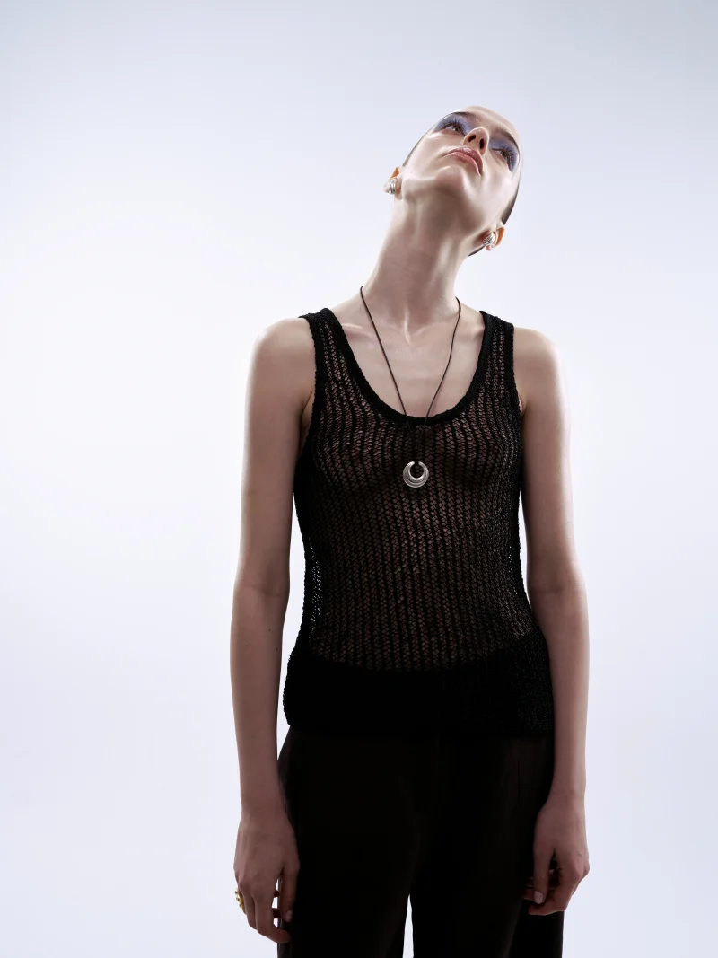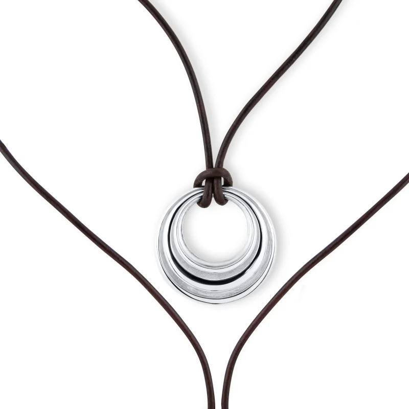 Pendant and strung on a dark brown leather cord finished with sterling silver end caps.