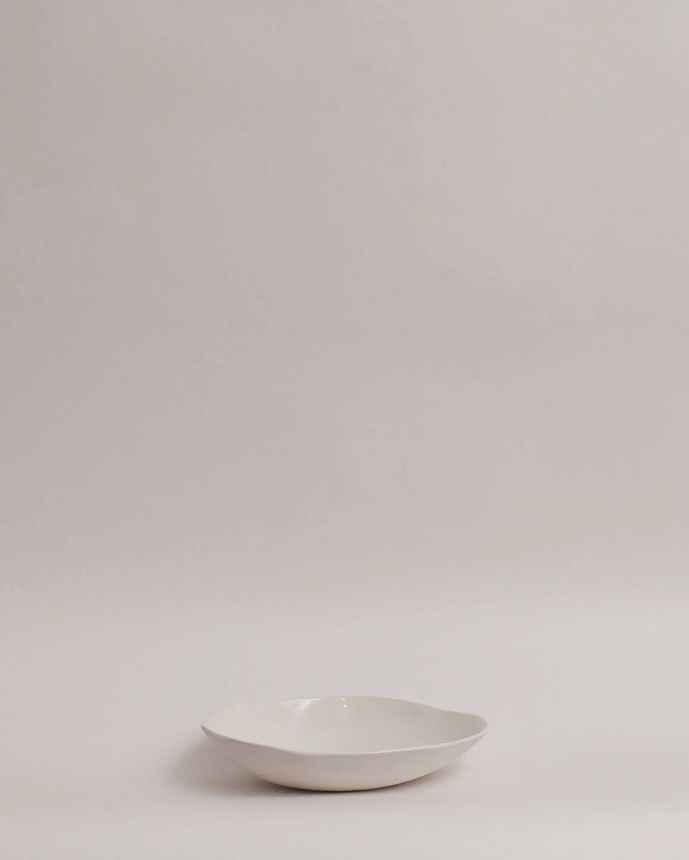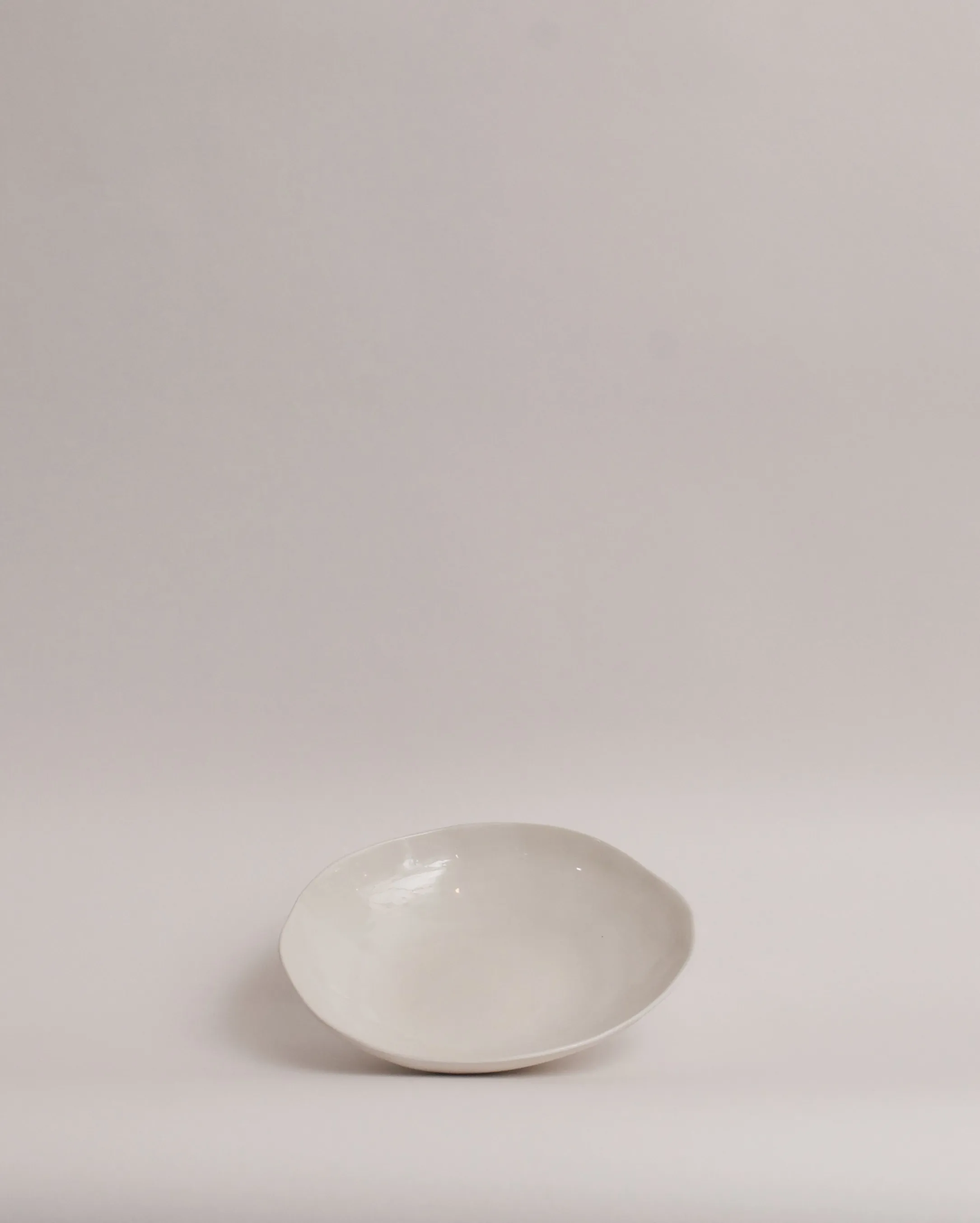 Handmade in white stoneware and finished with a matte-and-gloss contrast. The Large Serving Bowl is designed as a statement piece for the table, balancing everyday use with a clean silhouette. Available in white or black.