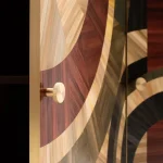 It is made of oak and inlaid with ornaments from the rye straw. The origin of the cabinet begins in Western Ukraine, where 80-year-old grandfather Orestes collects straw for our products. He carefully sorts the straws by length and diameter. During this time, the basis of the cabinet is made – the oak frame. The countertop passes the stitching stage, where the texture of the wood appears. In our workshop, the straw goes through a staining stage, after which it is inlaid with the cabinet itself.