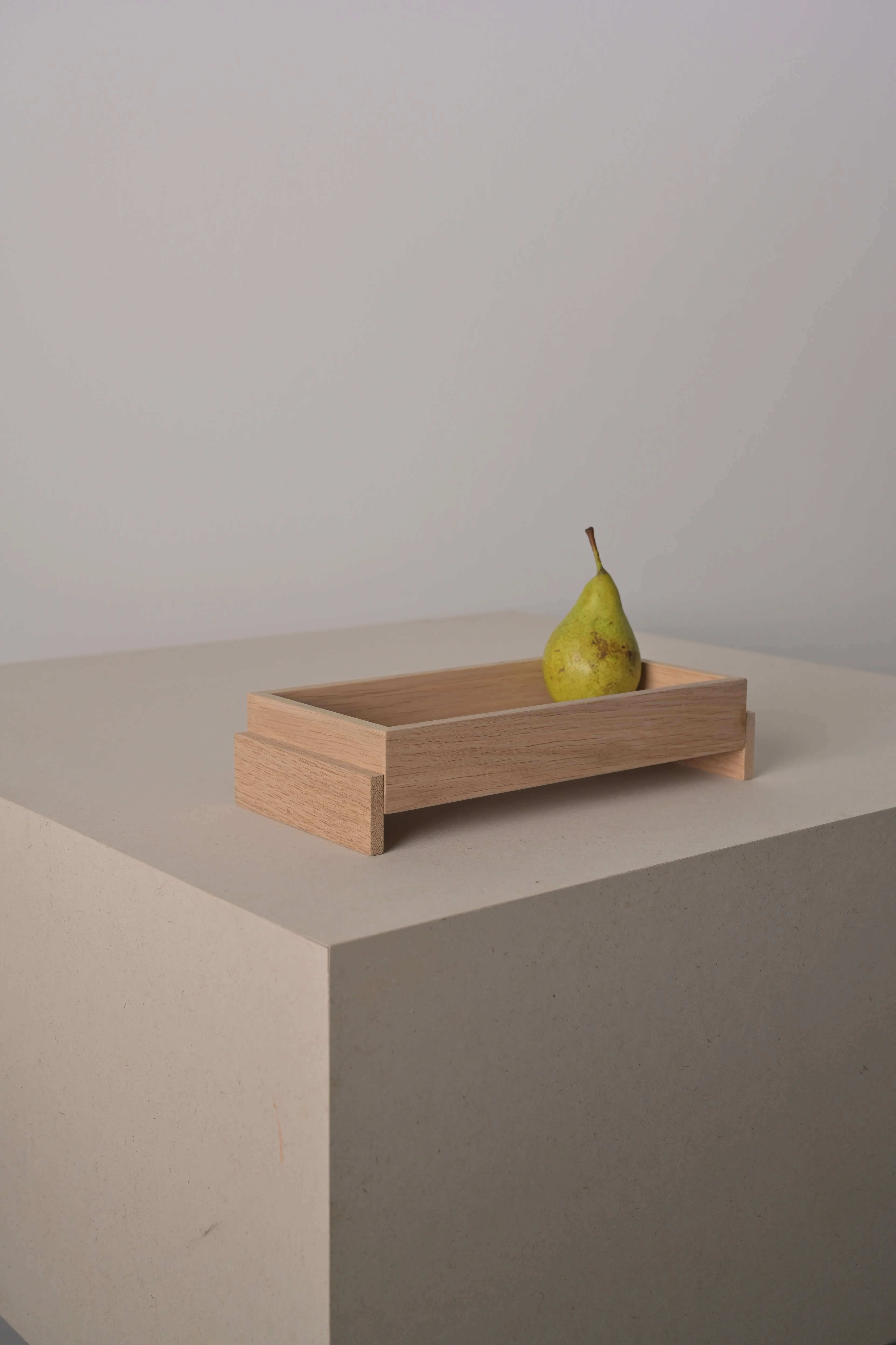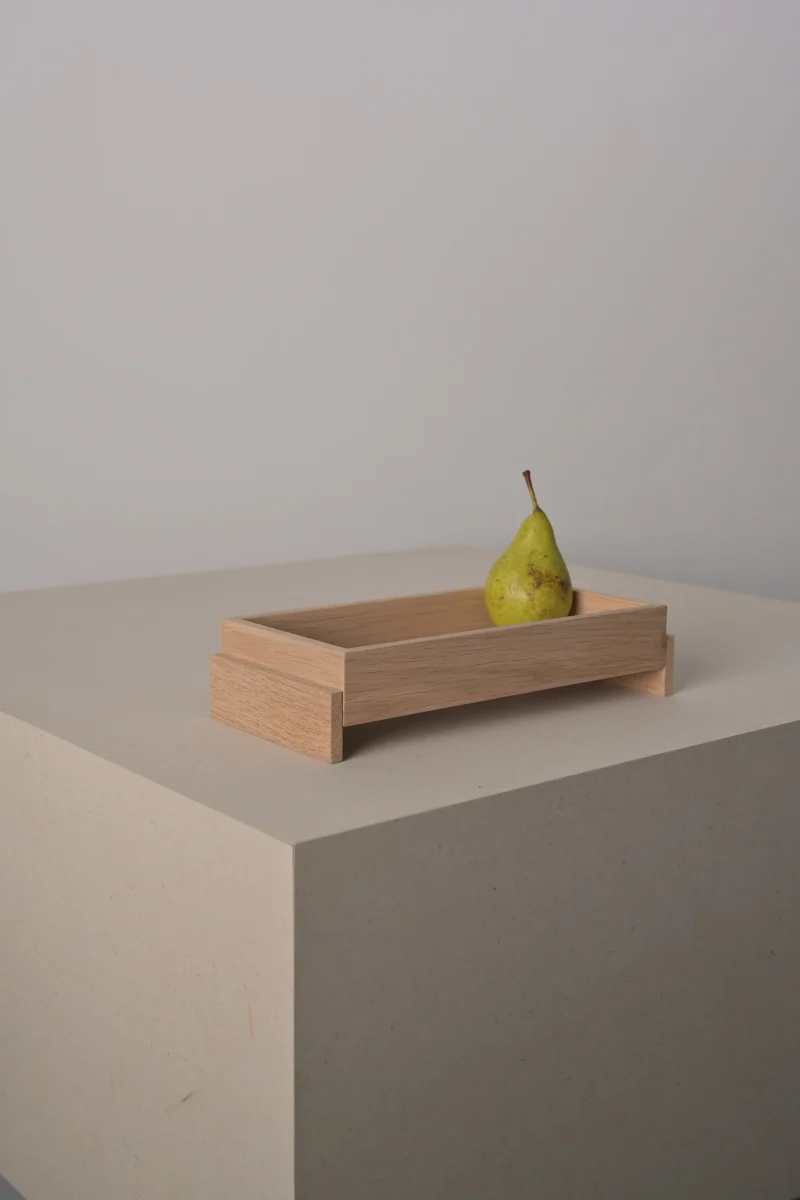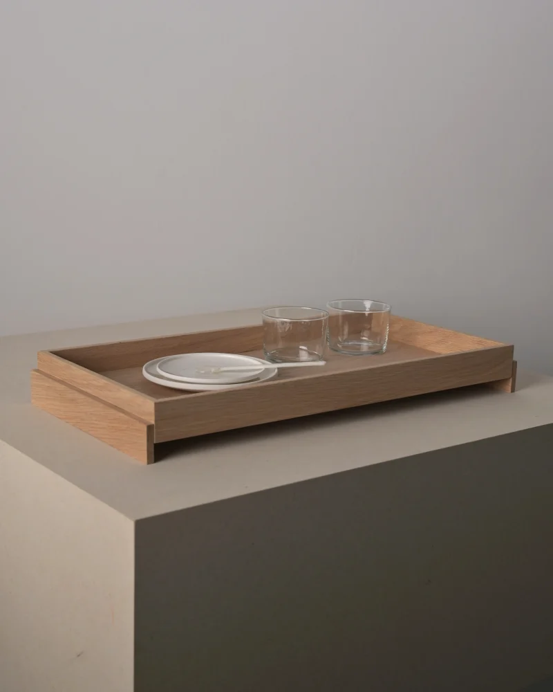 The SOMA Tray explores repetition and proportion through a series of simple geometric forms. Crafted from solid oak, it offers a calm surface that highlights the material’s natural grain and warmth. The trays can be freely stacked and used on both sides, creating subtle rhythms and sculptural compositions. Available in three sizes, it functions as an organizer, serving tray, or understated accent, a refined study in structure, materiality, and mindful simplicity. Each SOMA Tray is handcrafted, making every piece one of a kind.