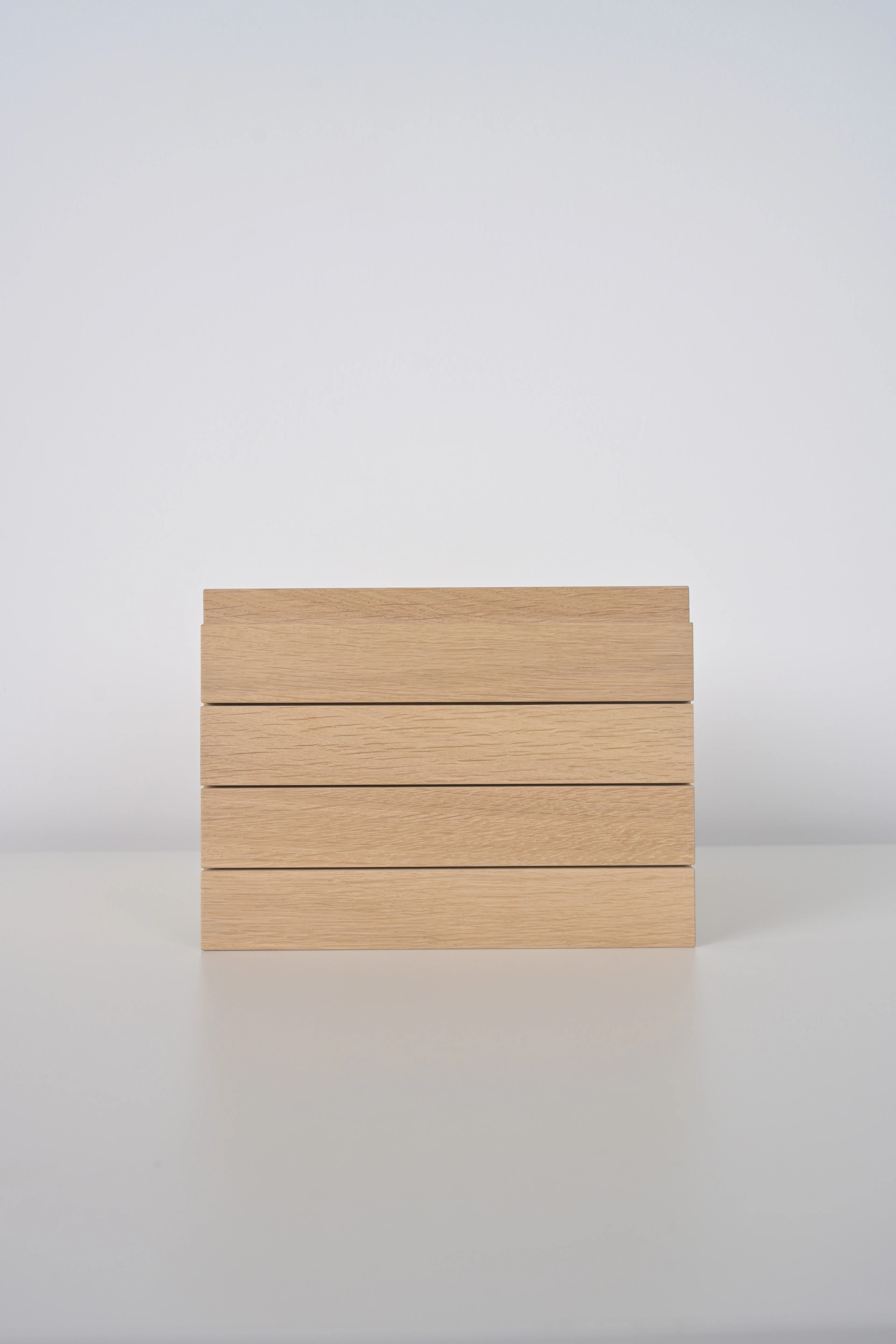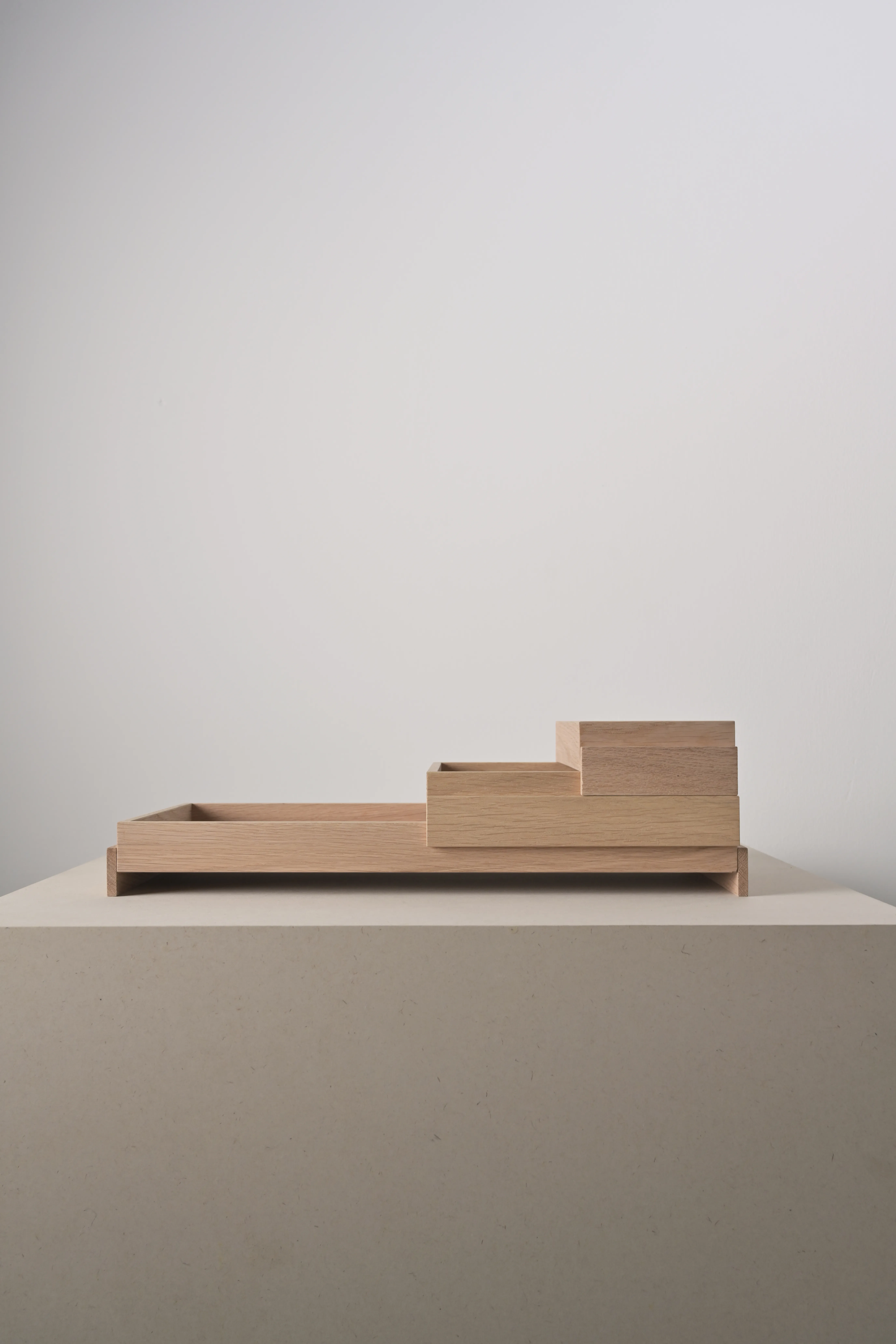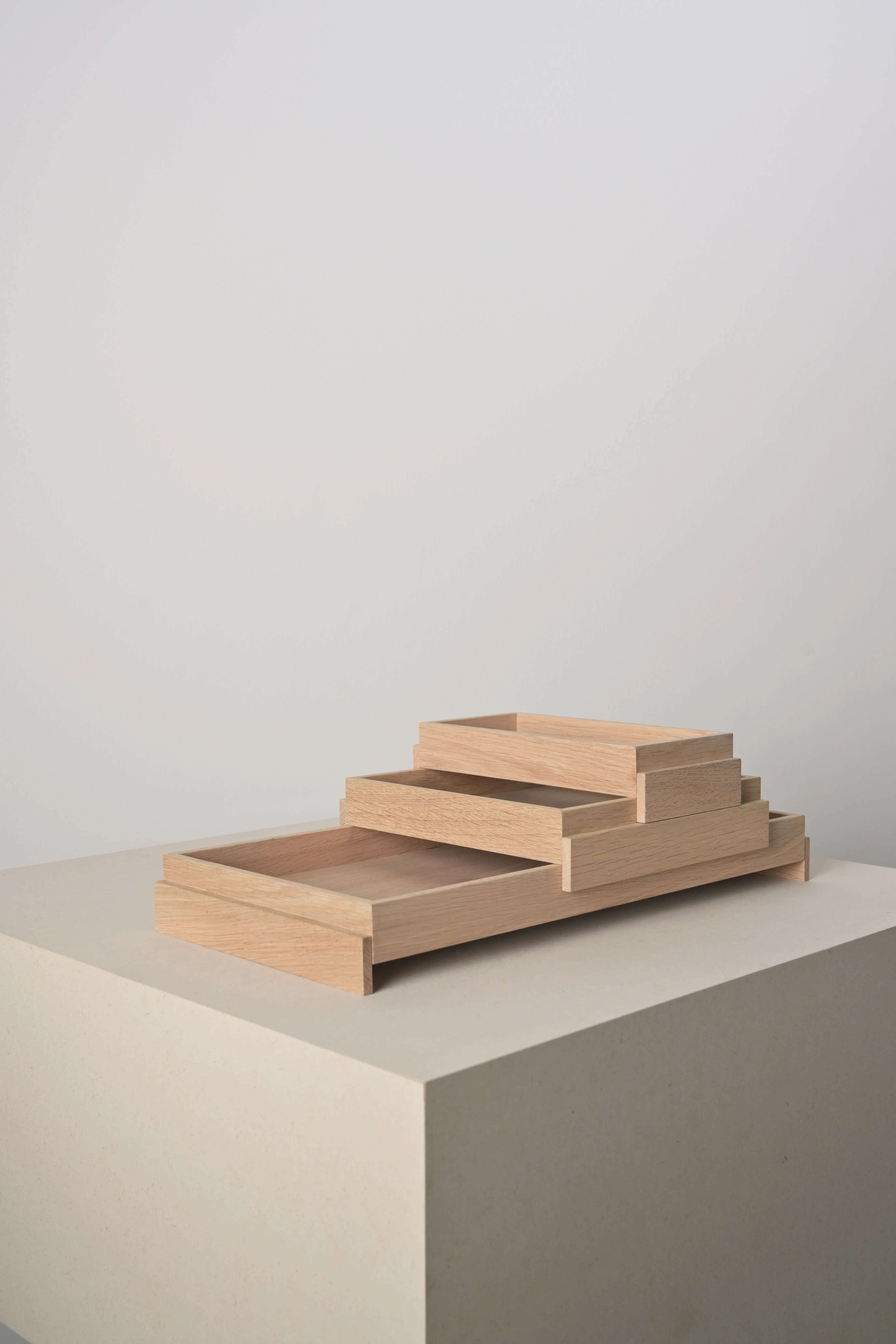 The SOMA Tray explores repetition and proportion through a series of simple geometric forms. Crafted from solid oak, it offers a calm surface that highlights the material’s natural grain and warmth. The trays can be freely stacked and used on both sides, creating subtle rhythms and sculptural compositions. Available in three sizes, it functions as an organizer, serving tray, or understated accent, a refined study in structure, materiality, and mindful simplicity. Each SOMA Tray is handcrafted, making every piece one of a kind.