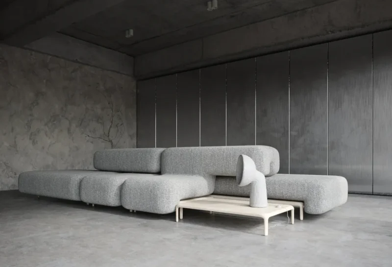 Materials: Upcycled steel frame and live ZTISTA material – a blend of cellulose, clay, flax fiber, wood chips, biopolymer cover.