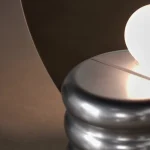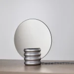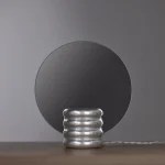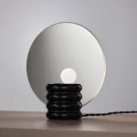 How does it work though? The two-sided Spegla Mirror Lamp is based on a specific mirror glass that is not completely opaque. The result is an interior object that acts as a mirror when the lamp behind the circular glass sheet isn’t lit. While turning the light up, the glass sheet transmits the light through the glass, while the mirror effect gets less visible. At the same time the matt edge of the mirror begins to glow and enhances the round shape with the golden glowing frame.