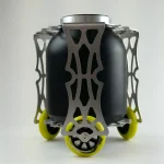 Nicolas Zanoni’s “Spinner” series features a Vase on roller-skate wheels. Thanks to this movement mechanism, these objects can pivot on themselves while remaining stable on their axis.