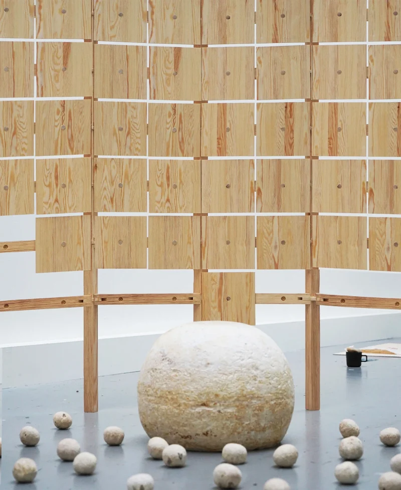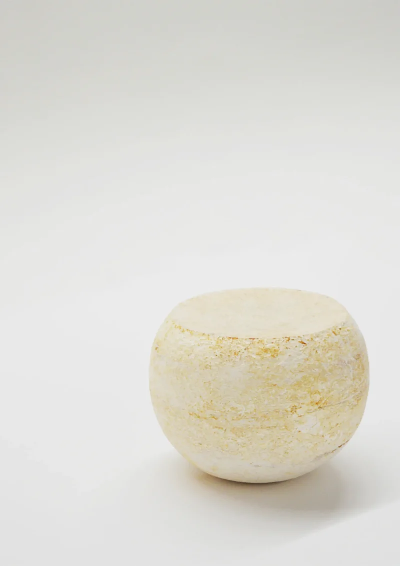 A mycelium stool by Olle Sahlqvist, inspired by the dome, a network of mycelium hyphae connecting the wooden fibers into a stable form.