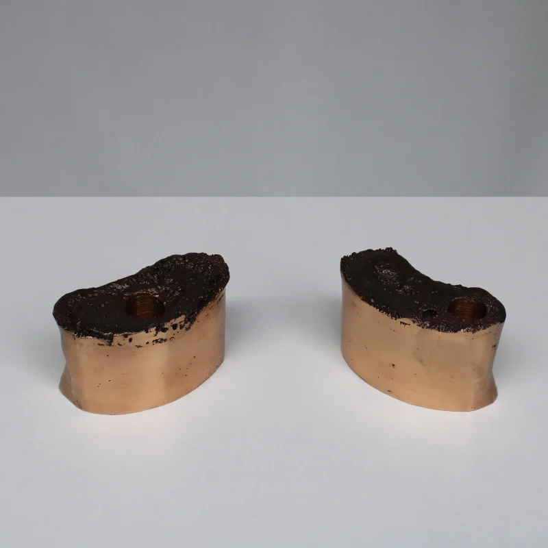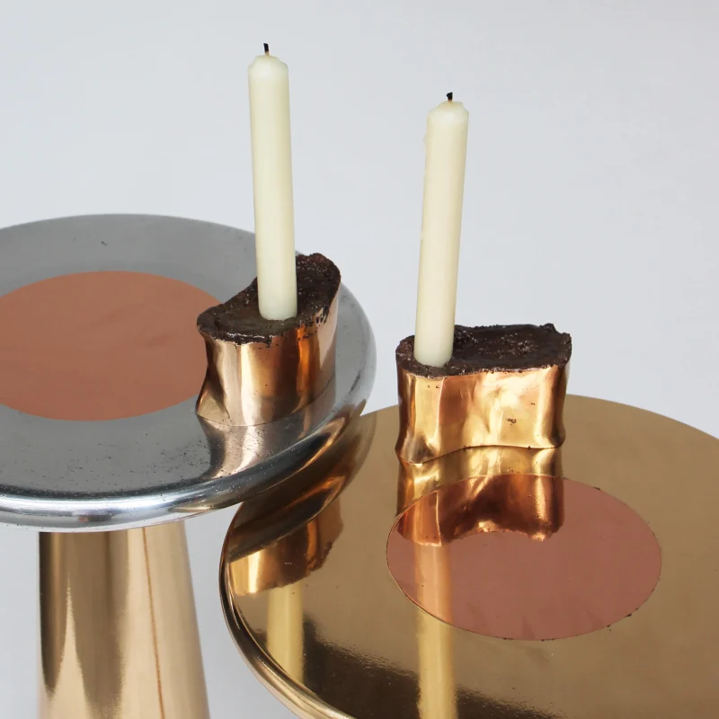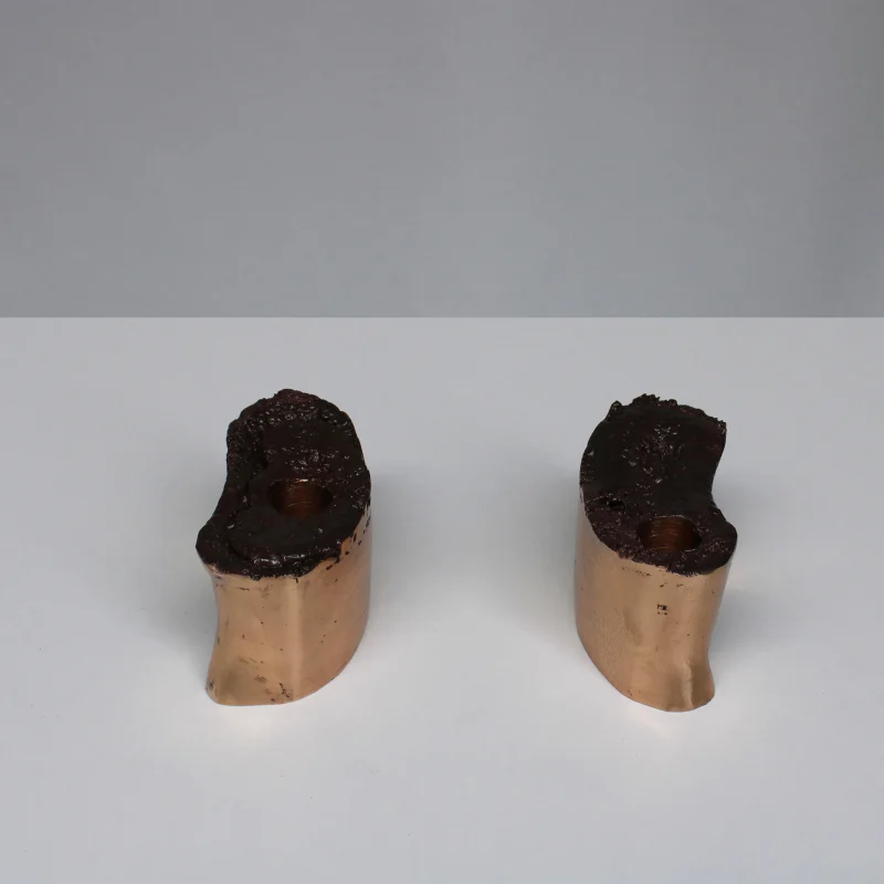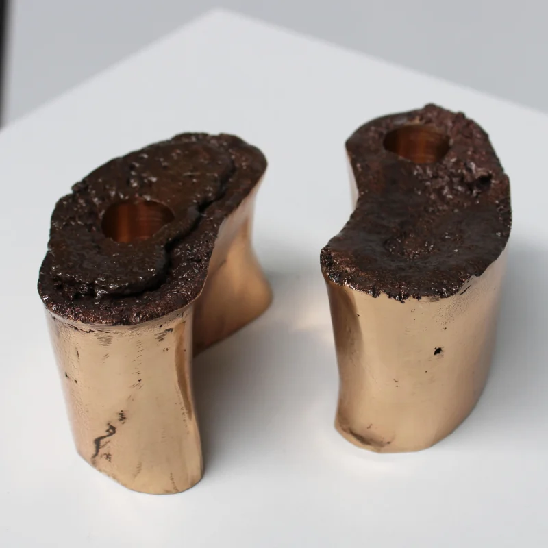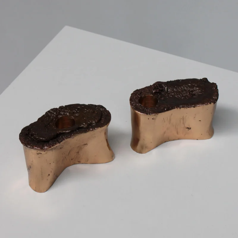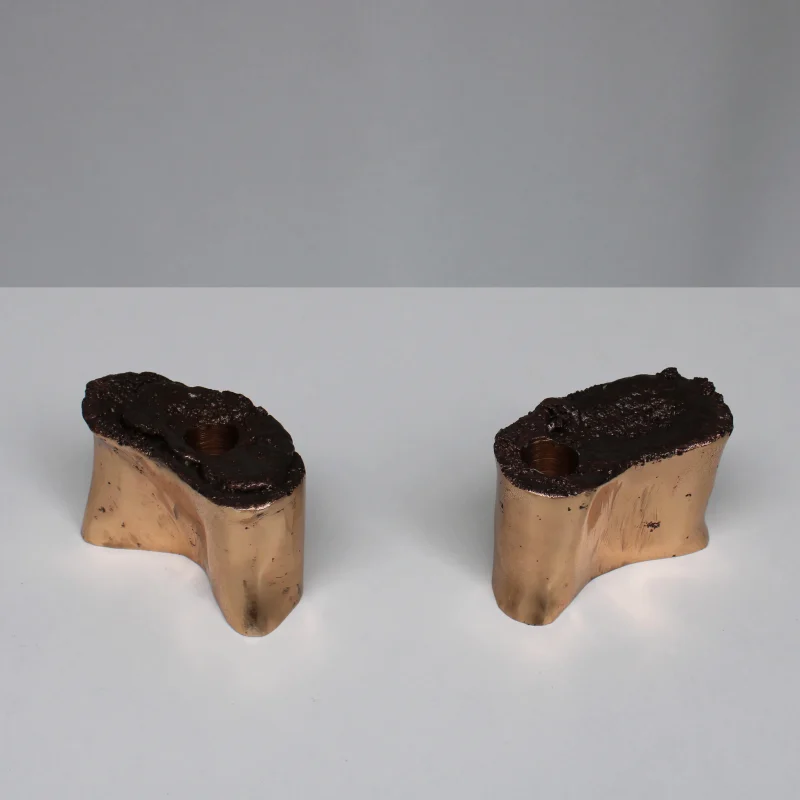Sprue Candlesticks are produced by hand-shaping the sand during production, without adhering to a certain model, so the organic shape of each element is defined as sole and unrepeatable.