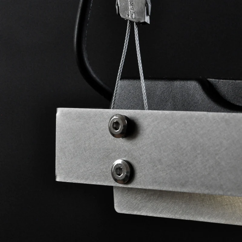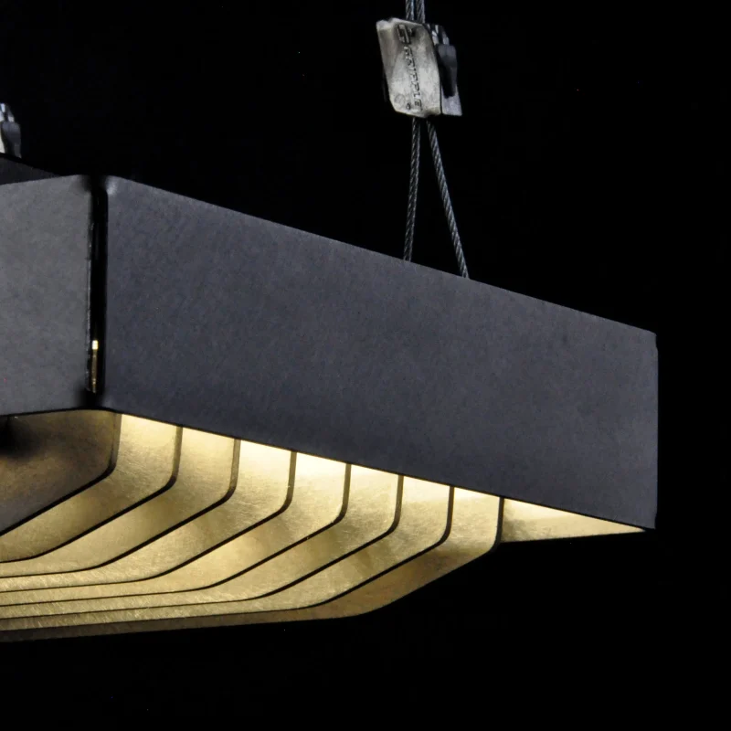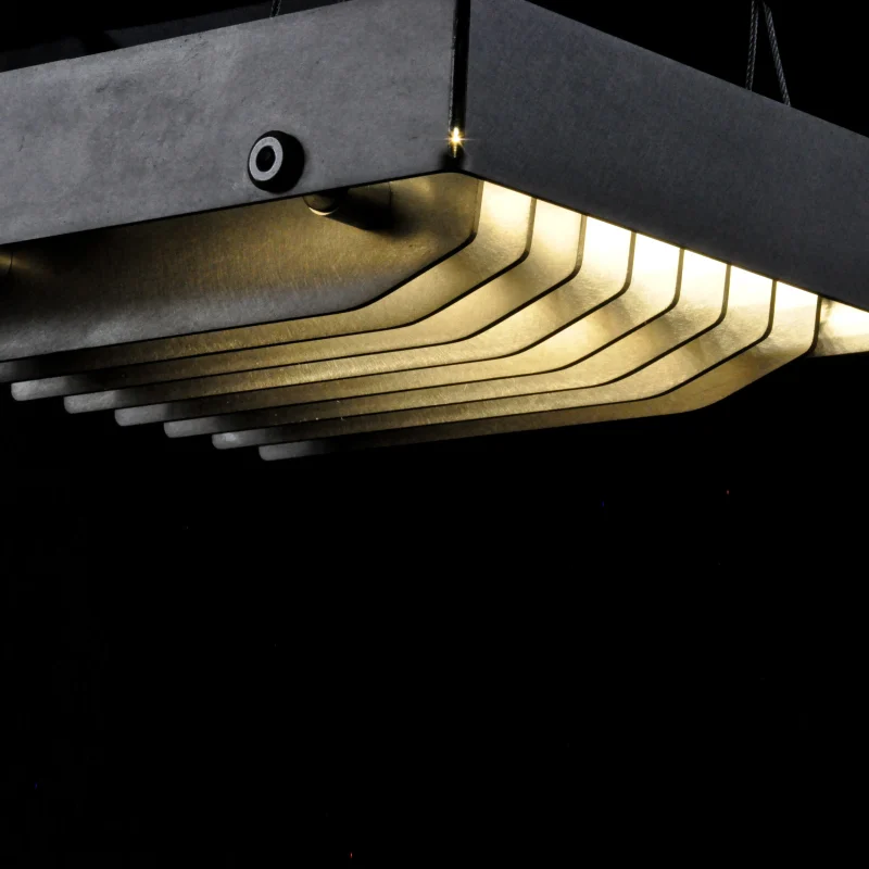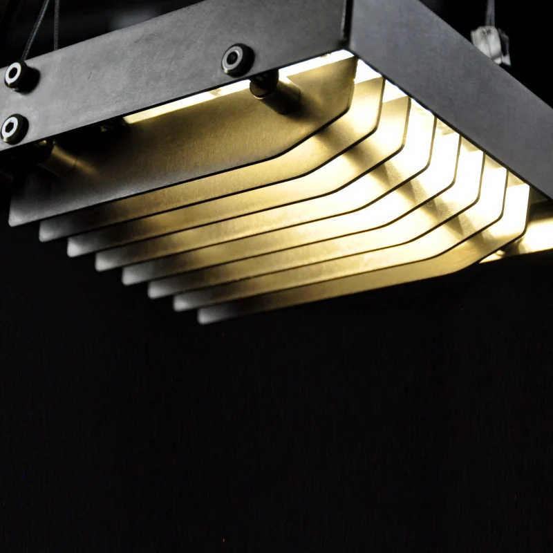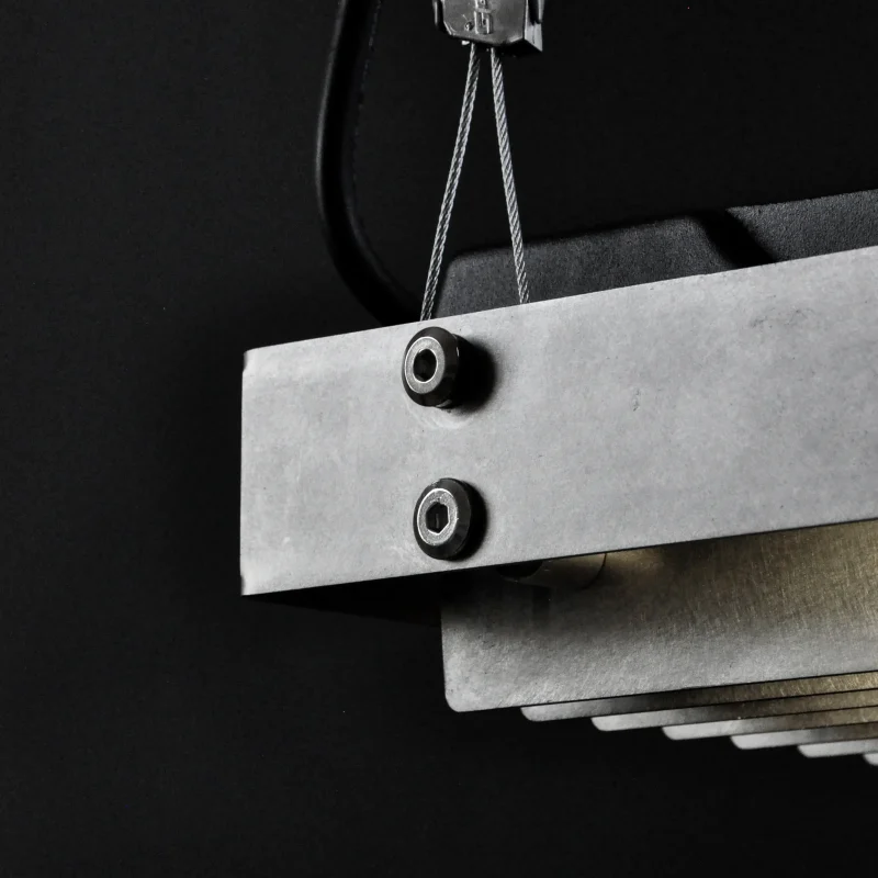 The design of this lamp gave rise to other creations as well as the 'sandwich design concept'. The insertion of assembly elements between two sheets of metal, allowing a dismountable design, became MLK Furniture's signature.