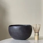 Each bowl is handcrafted, coil-built with black stoneware clay. No mold. No rush. Just rhythm and intention. Their perfectly imperfect form reflects the wabi-sabi spirit – a quiet reminder that beauty lives in the irregular, the incomplete, the real. Each bowl has its own weight and size, like shoes. You choose what fits your hand and your ritual. Meant for slow, focused moments in the art of preparing matcha.