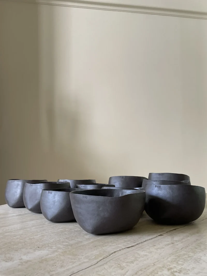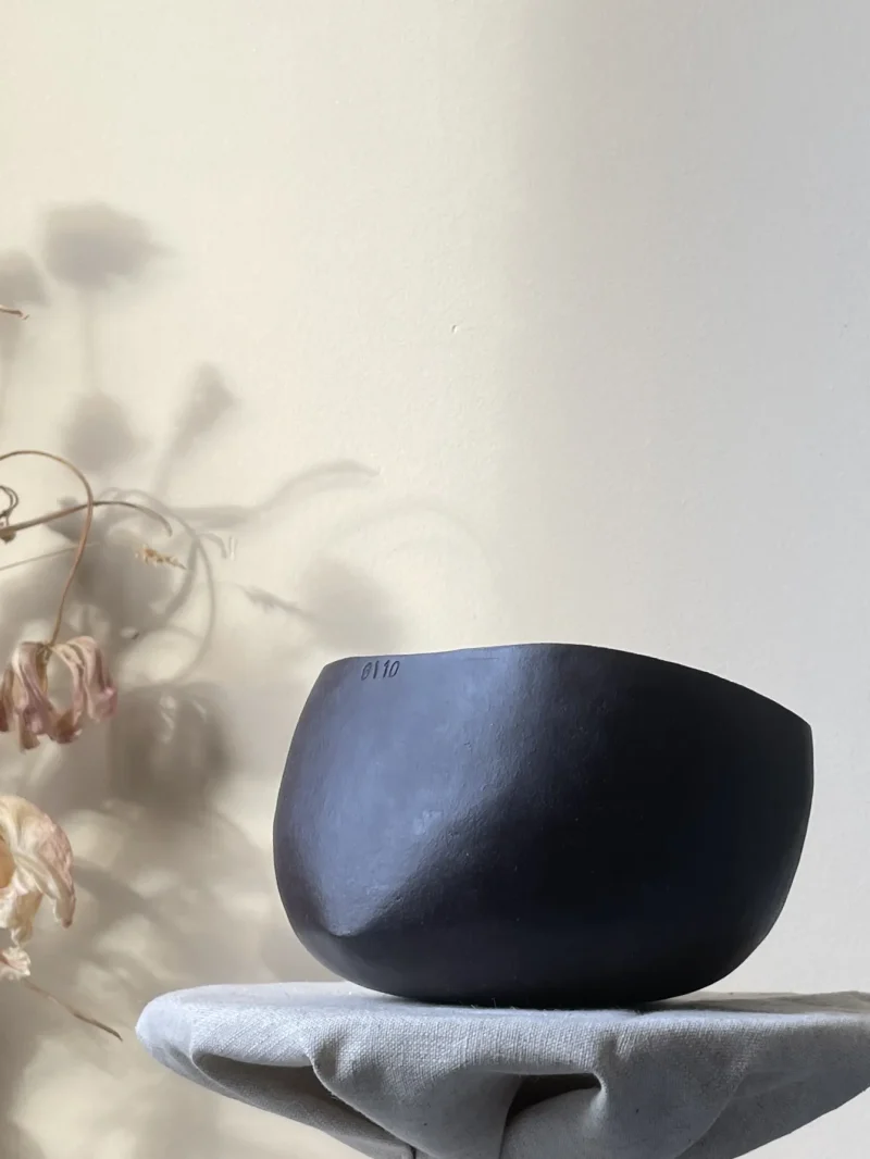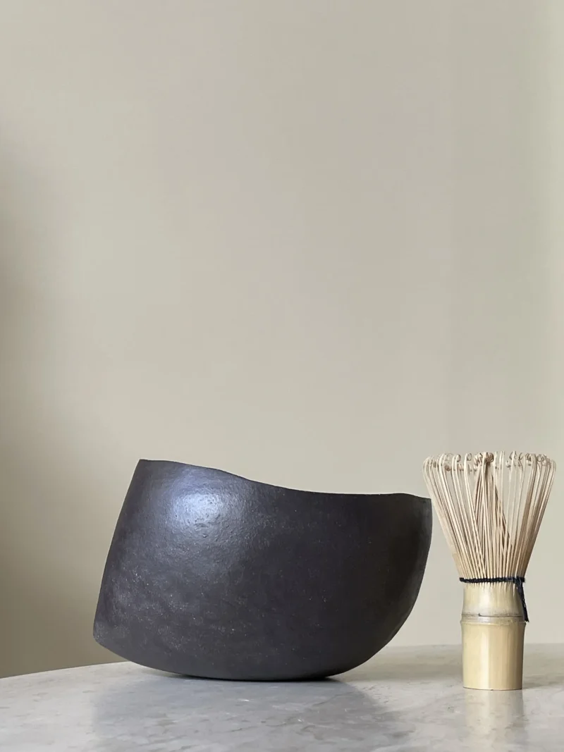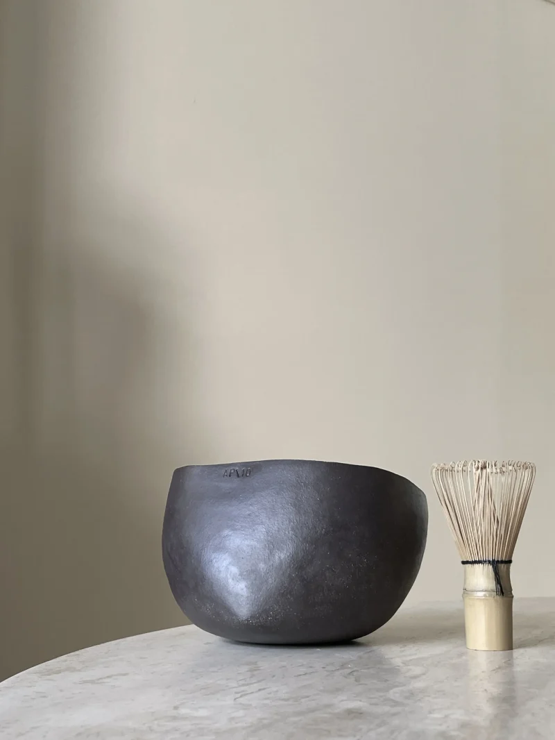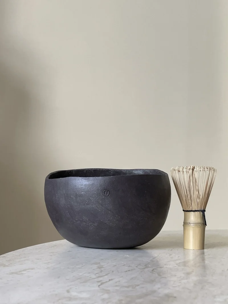 Each bowl is handcrafted, coil-built with black stoneware clay. No mold. No rush. Just rhythm and intention. Their perfectly imperfect form reflects the wabi-sabi spirit – a quiet reminder that beauty lives in the irregular, the incomplete, the real. Each bowl has its own weight and size, like shoes. You choose what fits your hand and your ritual. Meant for slow, focused moments in the art of preparing matcha.