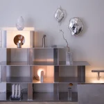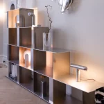 Stack, designed by Ghent architects studio MOTO, is a playful family of stackable furniture, constructed from a limited number of aluminium components that can be used to create cabinets, shelves, totems and coffee tables. It is a system that clicks together, requiring no screws or other mechanical fastenings. The result is an extremely simple yet versatile, durable, and flexible furniture system that offers countless combinations and possibilities, suitable for home interiors, offices, shops, and other environments.