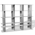 Stack, designed by Ghent architects studio MOTO, is a playful family of stackable furniture, constructed from a limited number of aluminium components that can be used to create cabinets, shelves, totems and coffee tables. It is a minimalist system that clicks together, requiring no screws or other mechanical fastenings. The result is an extremely simple yet versatile, durable, and flexible furniture system that offers countless combinations and possibilities, suitable for home interiors, offices, shops, and other environments.