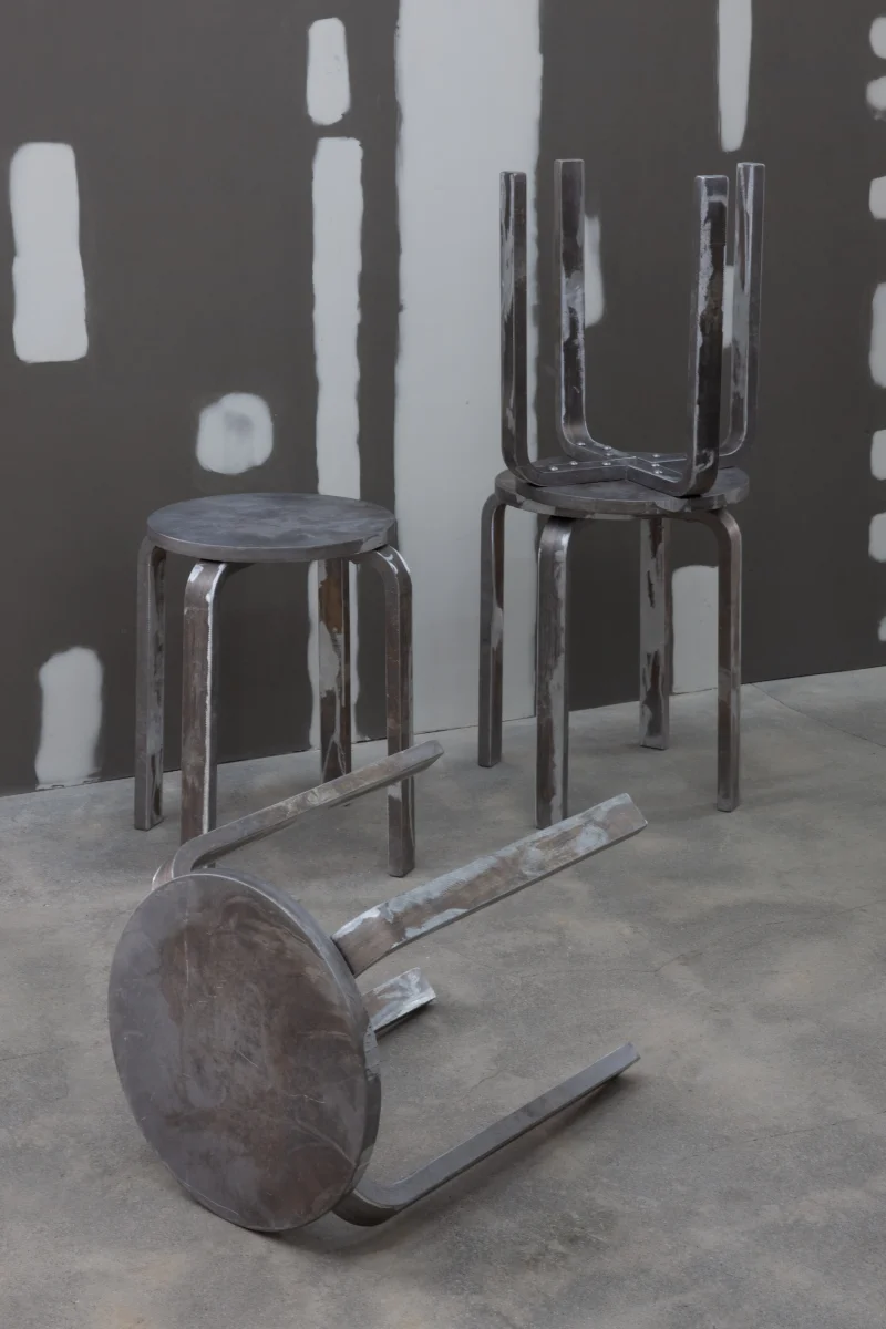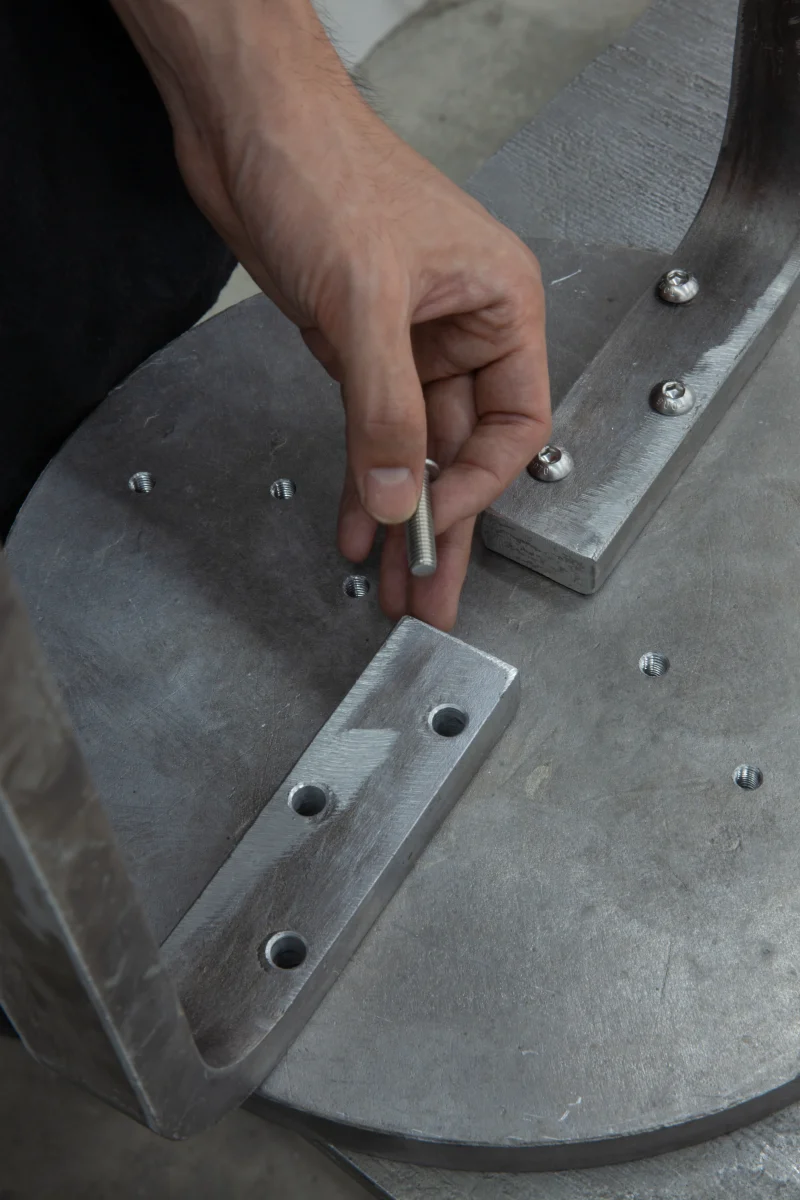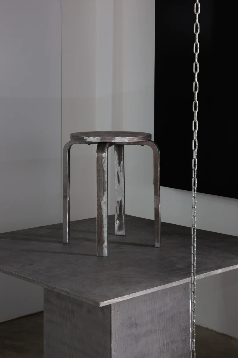 This stool pays homage to IKEA’s iconic basic stool design, reinterpreted through PRACTICE’s lens of material exploration and form. Crafted from aluminum, it celebrates the raw, textured surface of the material while offering a robust and lightweight structure. The stool is designed for easy assembly and disassembly, utilizing bolts and nuts to emphasize practicality and user engagement. Balancing functionality with a refined industrial aesthetic, STACKABLE STOOL 2 embodies PRACTICE’s approach to the almost provocatively simple but thoughtful design.