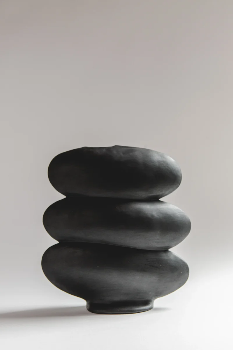 Inspired by balanced rocks found along the shore of a path less wandered, the Stacked Pebbles vase calls the viewer to meditate on their own path and journey. The act of balancing is fundamental to peace and harmony, and this totem invites reflection and refocus in the domesticated space of the home.