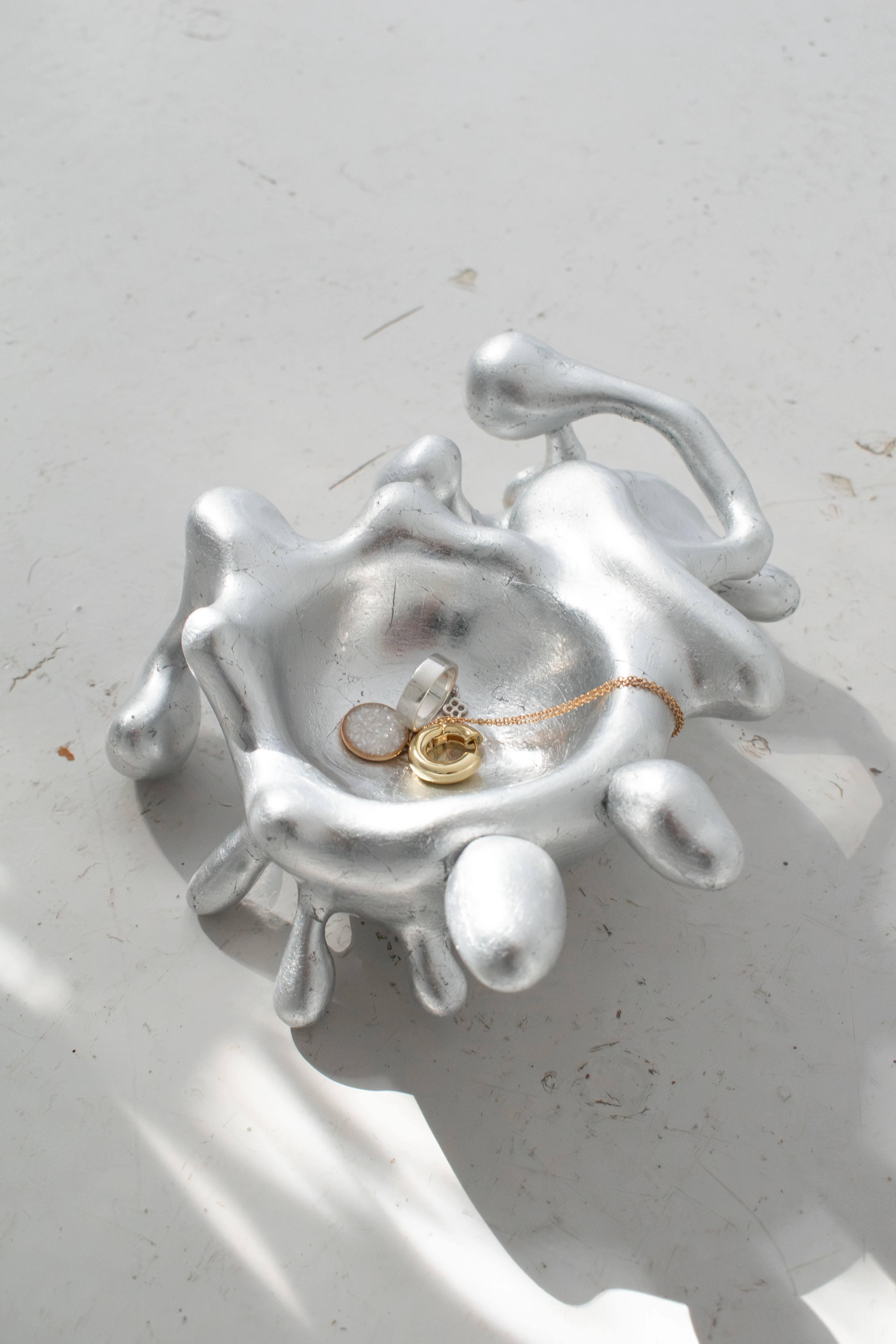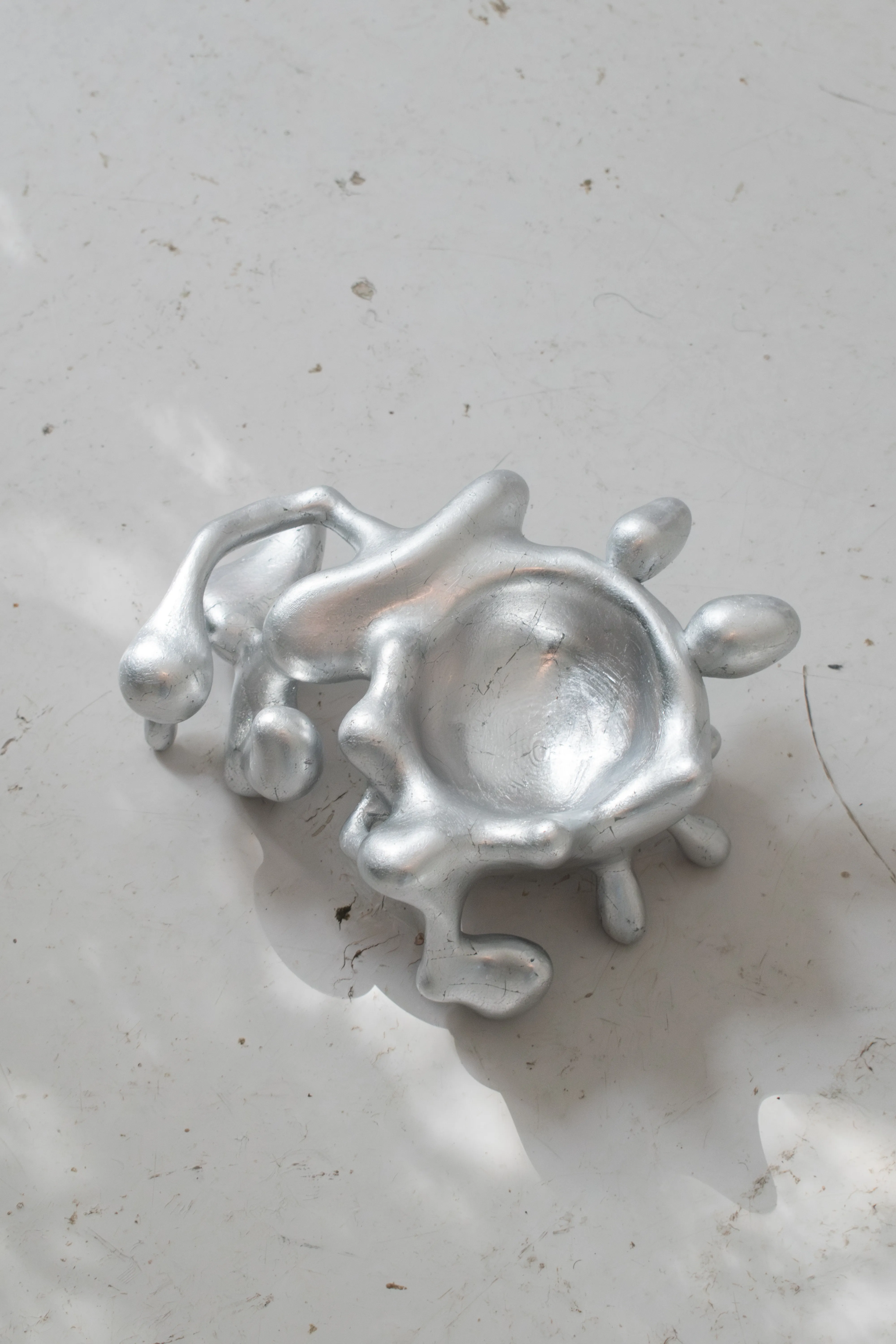 This piece was 3D printed and is available in two versions: one finished with acrylic paint, and the other with aluminum leaf.
