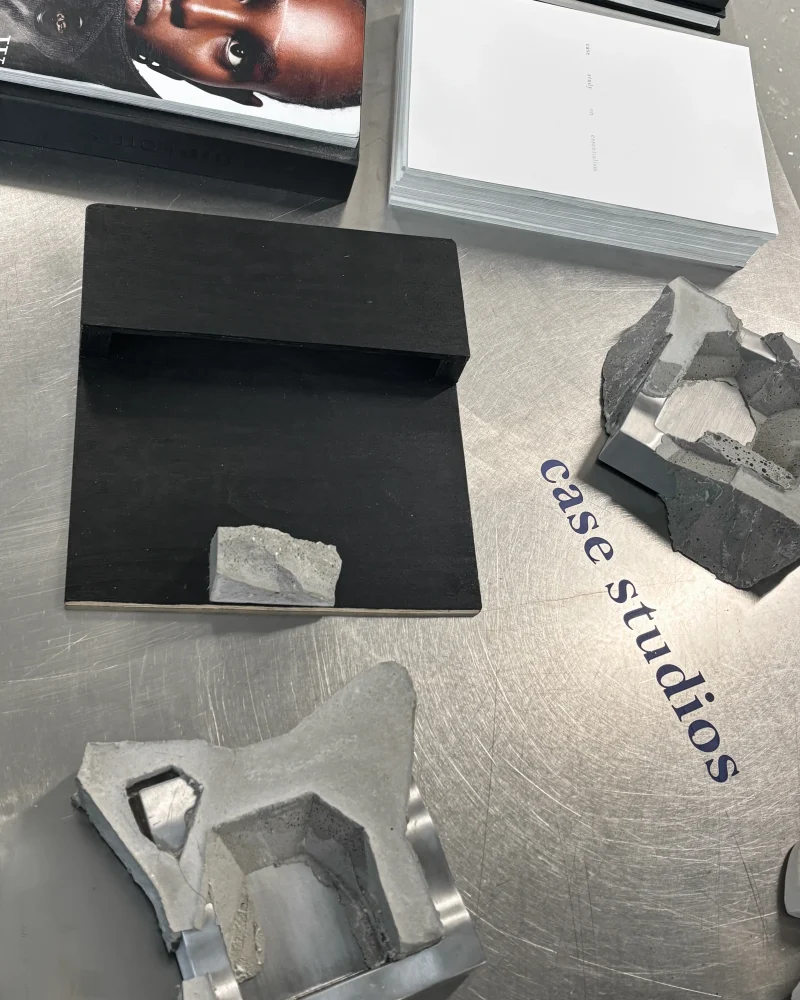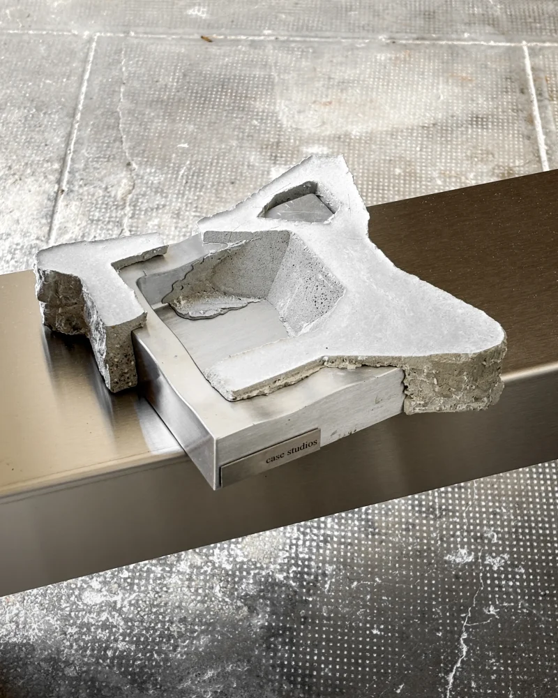The German Design Studios' main focus is the material, its features, structure and meaning. The intentional use, curation and finishing of unique and long lasting materials creates objects that both reshape and highlight the initial features of the certain material. Every object aims to be a physical manifestation of a certain topic. Following interdisciplinary perspectives, a generally straightforward design language and precise implementation of details, the work of case studios shapes objects with a unique and distinctive feeling. Based on a variety of projects and designs, ranging from kitchens and vases to benches and sidetables, case studios specialised in the processing of a signature concrete, with extra strong and delicate edges, to create unique shapes and forms. With each object, the design studio manifests a case study of a new material or concept, gradually adding stainless steel, glas, wood and natural stone to their expertise.