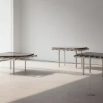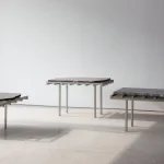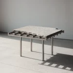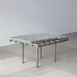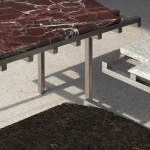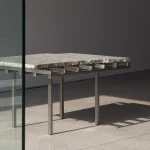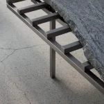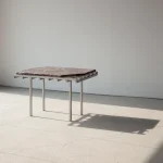 STANDARD reflects PRACTICE’s dedication to material reuse and thoughtful design. Constructed from leftover marble slabs sourced from a marble factory, this series of coffee tables reimagine waste as a purposeful object. Its design, inspired by the form of a pallet, not only functions as a table but also serves as a platform for storing additional pieces. The natural veining and variations in the marble emphasize the unique characteristics of the material, making each piece distinct. STANDARD is a striking example of PRACTICE’s approach to sustainable craftsmanship and functional artistry.