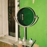 The Standing Mirror is made entirely from stainless steel. It has a fixed structure and is not disassemblable.