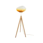 STATIX combines function with a unique eccentric style. With its handmade wooden tripod base, featuring finely crafted metal fixings, it carries away the whole ELOA collection like a telescope – presenting a sky of endless possibilities. The hand-blown lamp can easily adjust its brightness to your mood. In this catalogue we show two color variations. The Amber Iridescent version, with its exclusive hand-blown glass brings the glow of a sunset into the realm of your home. In Silver Smoke, this lamp surrounds you with the quietly elegant serenity of moonlight. These heavenly beings have a presence of their own.