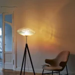 STATIX combines function with a unique eccentric style. With its handmade wooden tripod base, featuring finely crafted metal fixings, it carries away the whole ELOA collection like a telescope – presenting a sky of endless possibilities. The hand-blown lamp can easily adjust its brightness to your mood. In this catalogue we show two color variations. The Amber Iridescent version, with its exclusive hand-blown glass brings the glow of a sunset into the realm of your home. In Silver Smoke, this lamp surrounds you with the quietly elegant serenity of moonlight. These heavenly beings have a presence of their own.