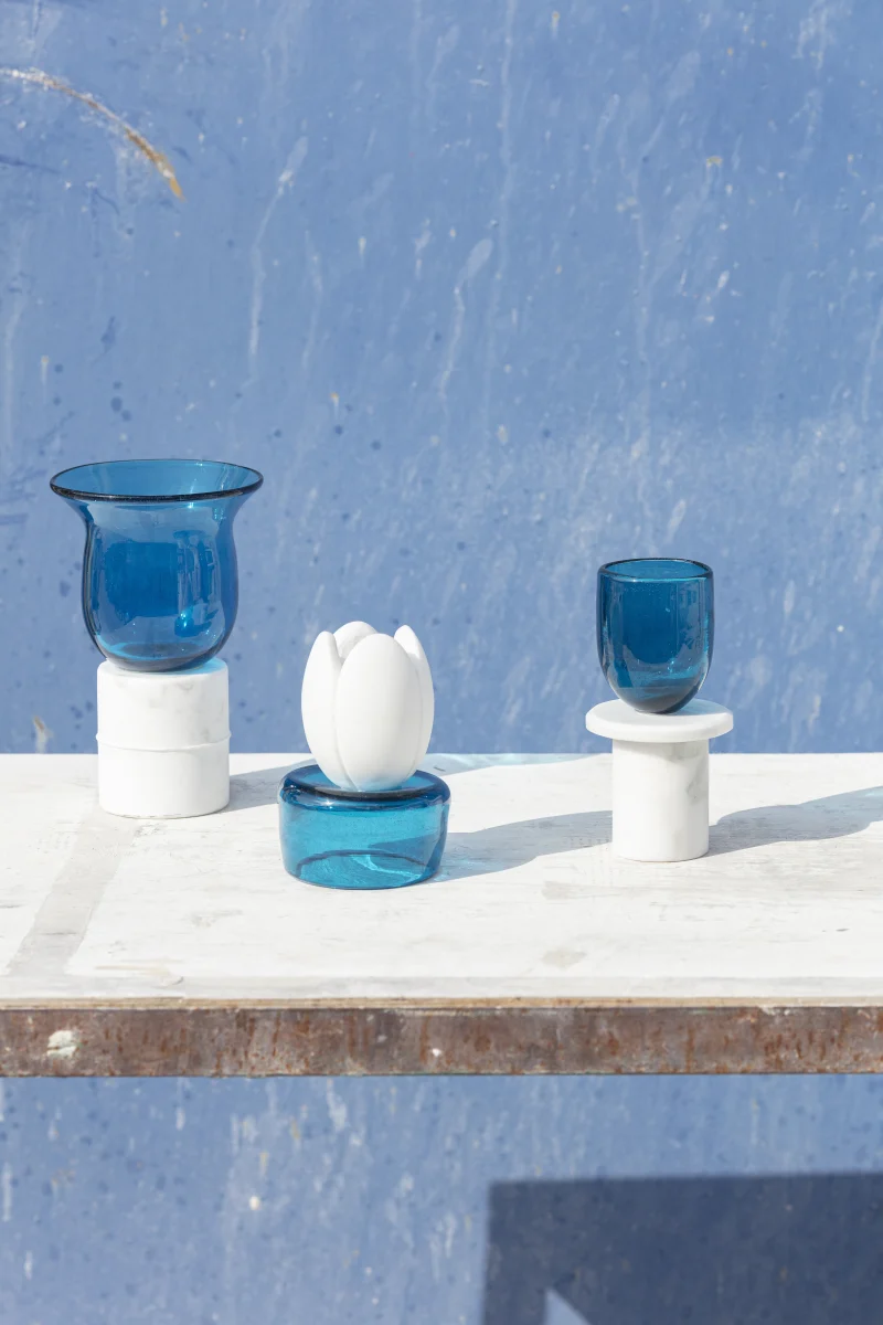 At a time when the world came to a halt, marble atelier on.entropy tapped inwardly for sources of creativity and ways of continuing the making process. The result is a collection of objects made out of marble and blown glass, articles that had been lying dormant at workshops for decades – “Stillness”. Bringing new light into what is already there.
