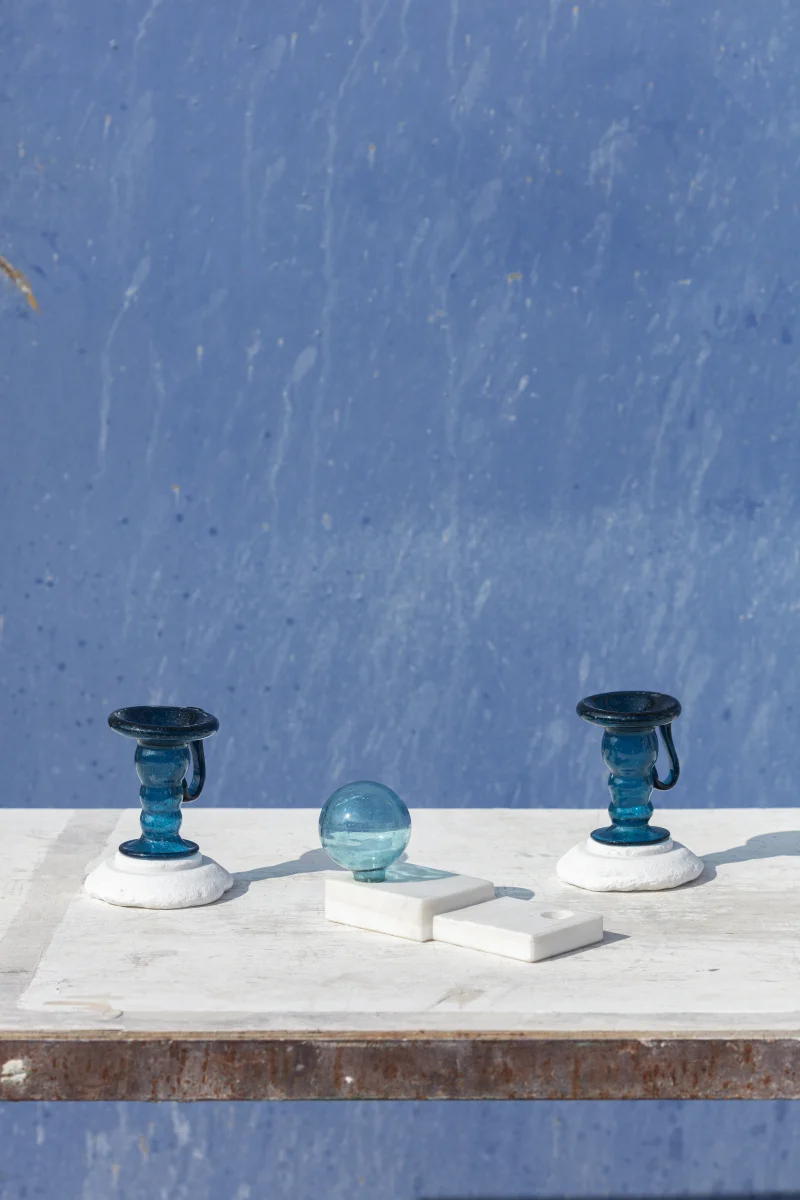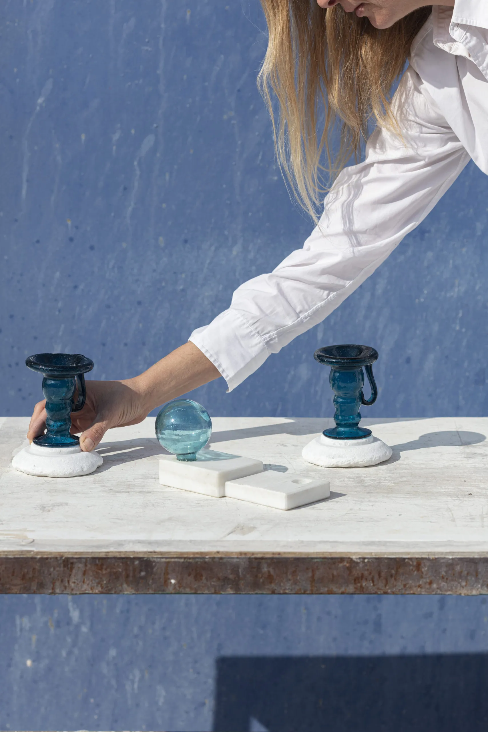 At a time when the world came to a halt, marble atelier on.entropy tapped inwardly for sources of creativity and ways of continuing the making process. The result is a collection of objects made out of marble and blown glass, articles that had been lying dormant at workshops for decades – “Stillness”. Bringing new light into what is already there.