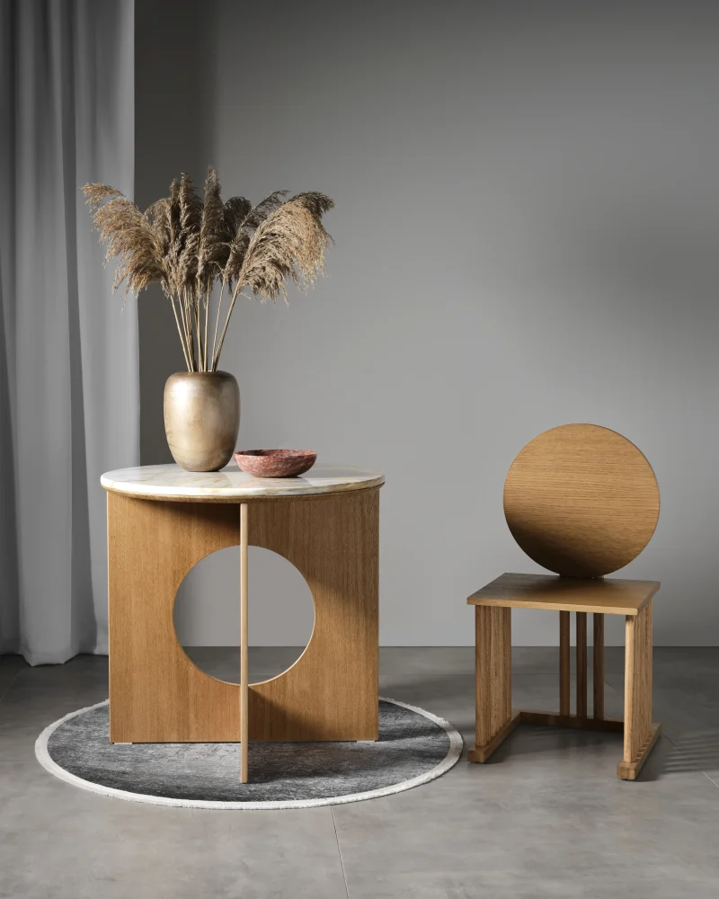 Designed with modern and simple geometry, the Stoa chair emerges from the fusion of natural materials and minimal lines. Its name is inspired by Stoic philosophy, which centers on the pursuit of happiness and living in harmony with nature. The design of the chair reflects this philosophical approach, embracing simplicity and balance.