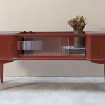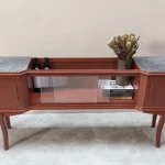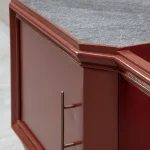 Stone in Red is an open bar designed with a combination of wood, rock, and glass. Originally created in 1970, this piece has been reimagined and transformed, with a deep appreciation for both its history and modern flair. The bold red color was chosen for its intensity and elegance, adding a unique touch to the piece.