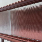 A distinctive feature of this bar is the addition of glass, incorporating a unique design. The top of the bar is adorned with natural stone tiles on both the right and left sides, creating a tactile, sophisticated surface. The open space inside allows for easy storage of books, wine bottles, or vinyls, making it as functional as it is aesthetically pleasing.